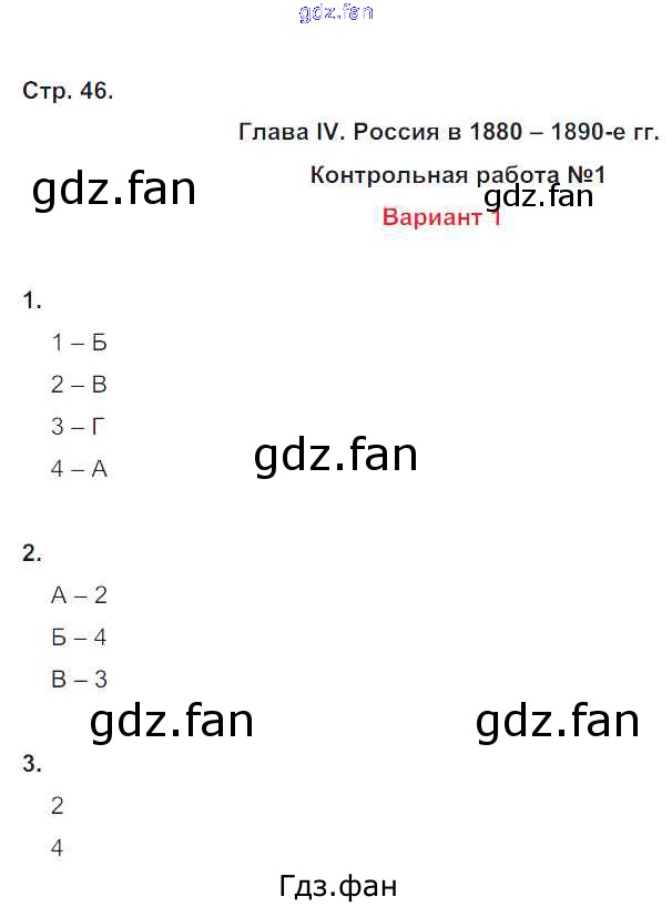 Проверка домашнего задания всегда занимает большое количество времени. На помощь приходит ГДЗ фан по Истории девятого класса. Здесь собраны популярные ответы на 46 (Глава 4. Россия в 1880 — 1890-е гг. Контрольная работа 1. Вариант 1 № 1, 2, 3) История России 9 класс контрольные работы Артасов И.А.