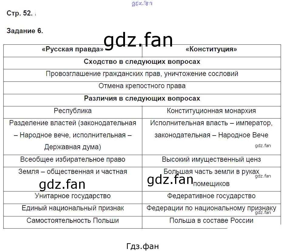 Проверка домашнего задания всегда занимает большое количество времени. На помощь приходит ГДЗ фан по Истории девятого класса. Здесь собраны популярные ответы на 52 (№ 6) История России 9 класс рабочая тетрадь Чернова М.Н. (к уч. Торкунова А.В.)