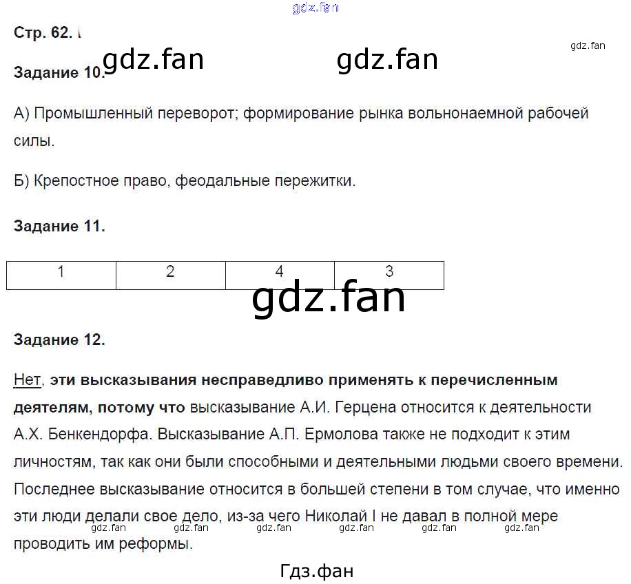 Проверка домашнего задания всегда занимает большое количество времени. На помощь приходит ГДЗ фан по Истории девятого класса. Здесь собраны популярные ответы на 62 (№ 10, 11, 12) История России 9 класс рабочая тетрадь Чернова М.Н. (к уч. Торкунова А.В.)