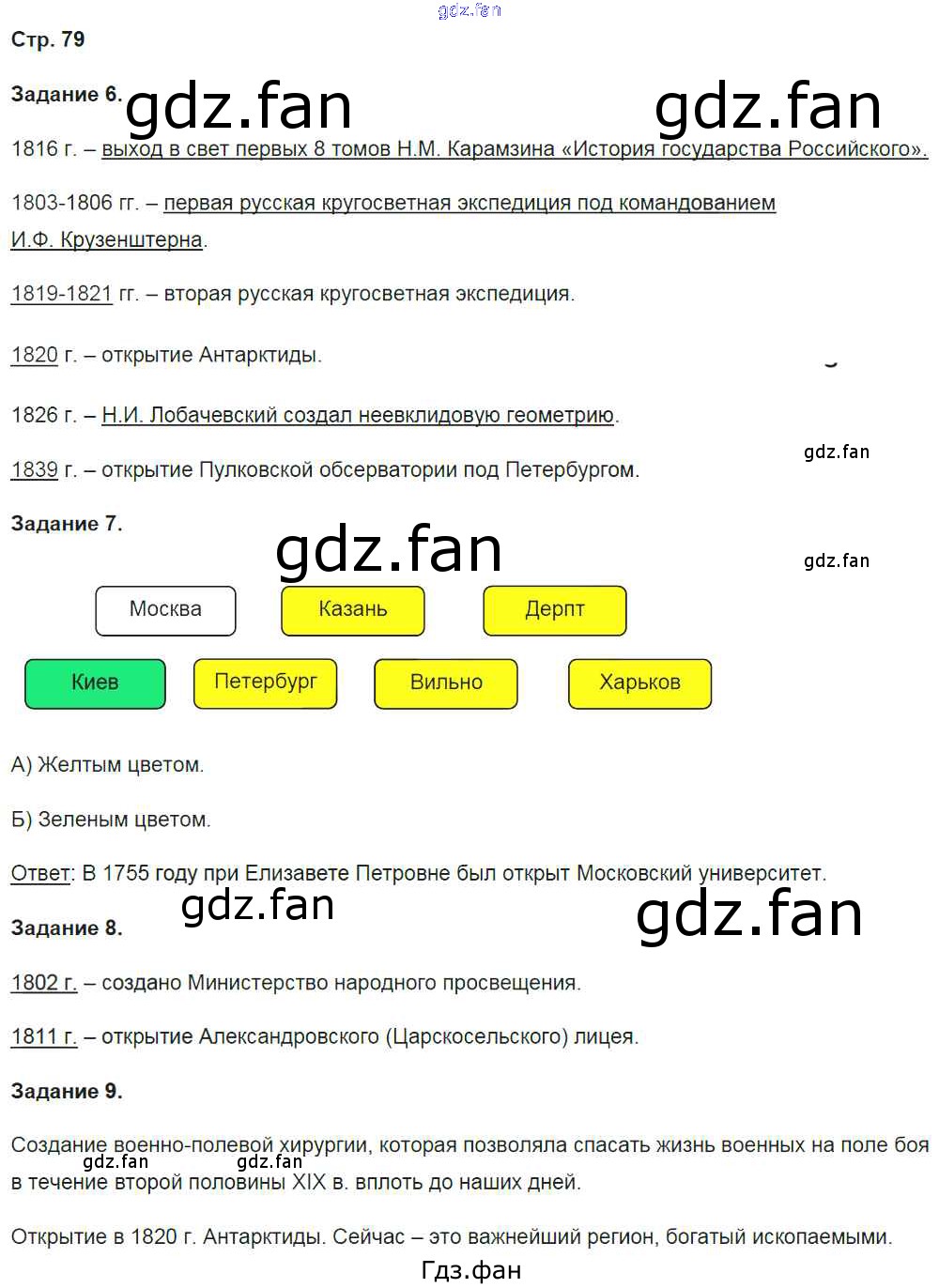 Проверка домашнего задания всегда занимает большое количество времени. На помощь приходит ГДЗ фан по Истории девятого класса. Здесь собраны популярные ответы на 79 (№ 6, 7, 8, 9) История России 9 класс рабочая тетрадь Чернова М.Н. (к уч. Торкунова А.В.)
