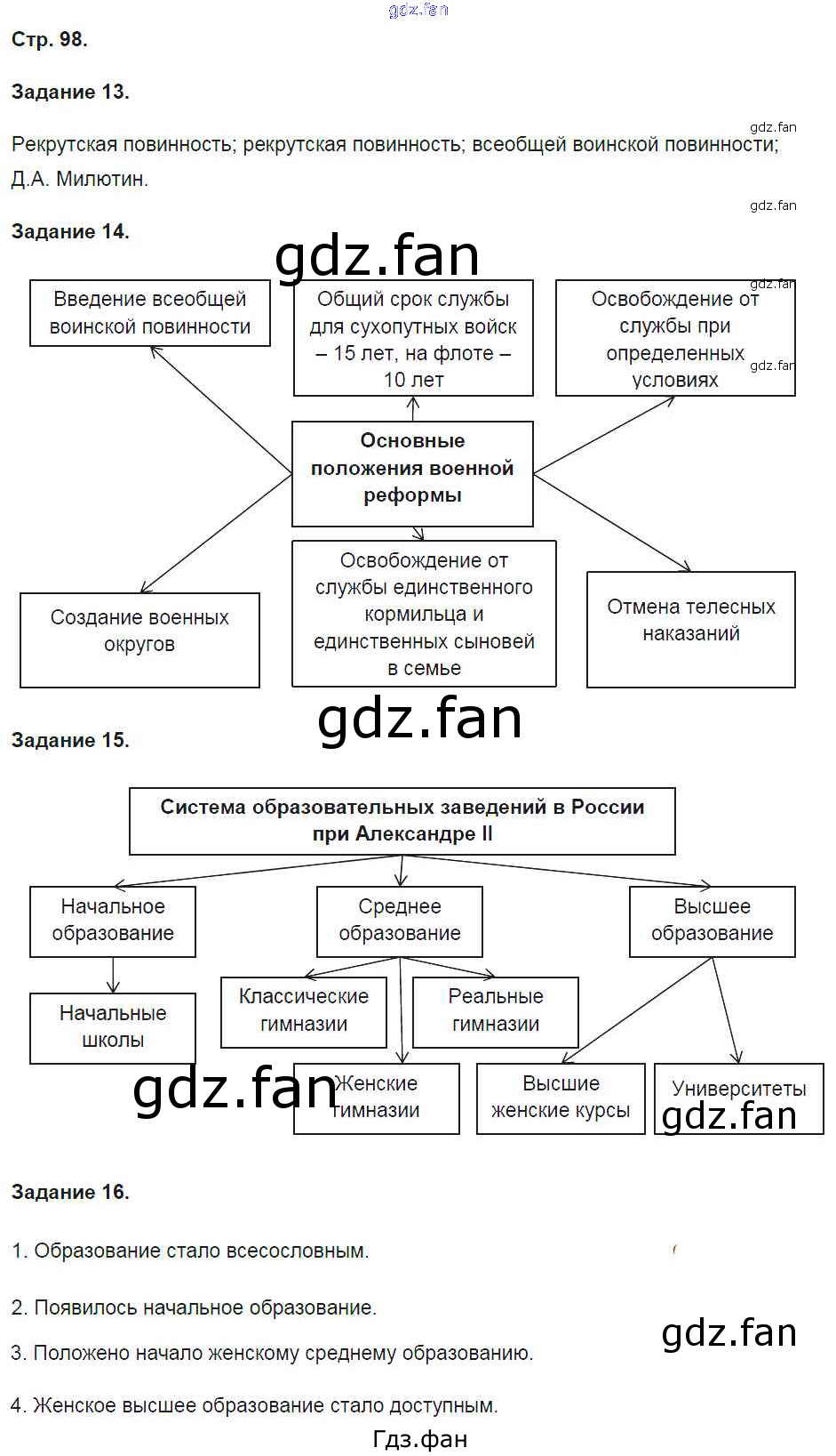 Проверка домашнего задания всегда занимает большое количество времени. На помощь приходит ГДЗ фан по Истории девятого класса. Здесь собраны популярные ответы на 98 (№ 13, 14, 15, 16) История России 9 класс рабочая тетрадь Чернова М.Н. (к уч. Торкунова А.В.)