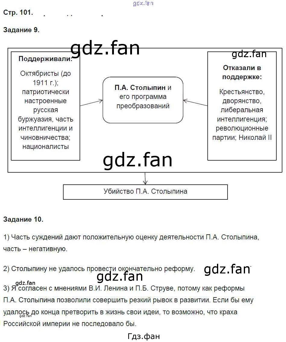 Проверка домашнего задания всегда занимает большое количество времени. На помощь приходит ГДЗ фан по Истории девятого класса. Здесь собраны популярные ответы на 101 (№ 9, 10) История России 9 класс рабочая тетрадь Чернова М.Н. (к уч. Торкунова А.В.)