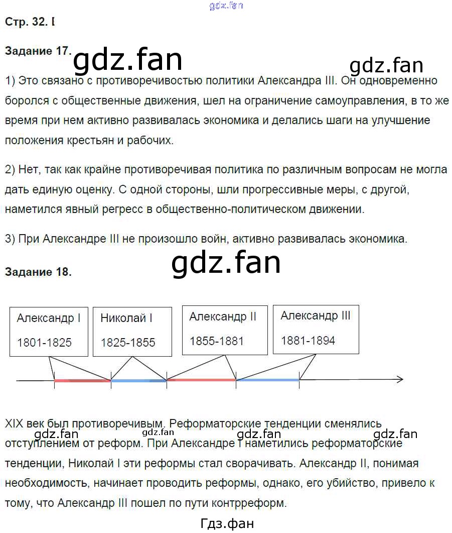 Проверка домашнего задания всегда занимает большое количество времени. На помощь приходит ГДЗ фан по Истории девятого класса. Здесь собраны популярные ответы на 32 (№ 17, 18) История России 9 класс рабочая тетрадь Чернова М.Н. (к уч. Торкунова А.В.)