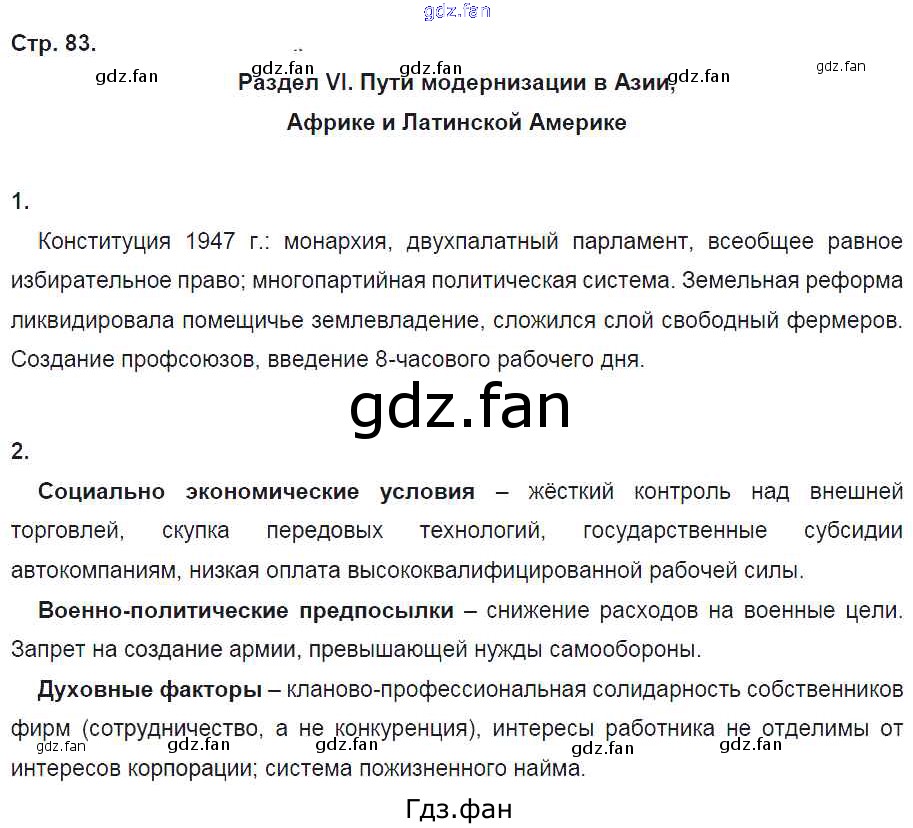 Проверка домашнего задания всегда занимает большое количество времени. На помощь приходит ГДЗ фан по Истории девятого класса. Здесь собраны популярные ответы на 83 (Раздел 6. Пути модернизации в Азии, Африки и Латинской Америке № 1, 2) История 9 класс рабочая тетрадь Ермакова И.А. (к уч. Загладина Н.В.)