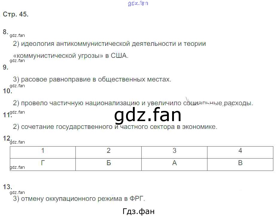 Проверка домашнего задания всегда занимает большое количество времени. На помощь приходит ГДЗ фан по Истории девятого класса. Здесь собраны популярные ответы на 45 (№ 8, 9, 10, 11, 12, 13) История 9 класс тетрадь-тренажёр Новейшее время XX - начало XXI века Корунова Е.В.