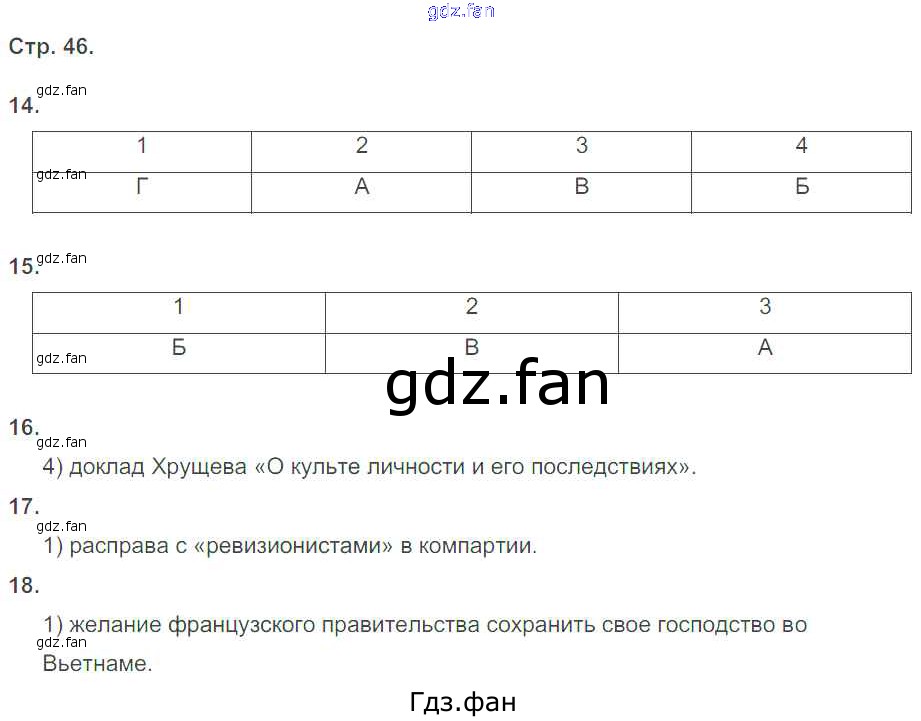 Проверка домашнего задания всегда занимает большое количество времени. На помощь приходит ГДЗ фан по Истории девятого класса. Здесь собраны популярные ответы на 46 (№ 14, 15, 16, 17, 18) История 9 класс тетрадь-тренажёр Новейшее время XX - начало XXI века Корунова Е.В.