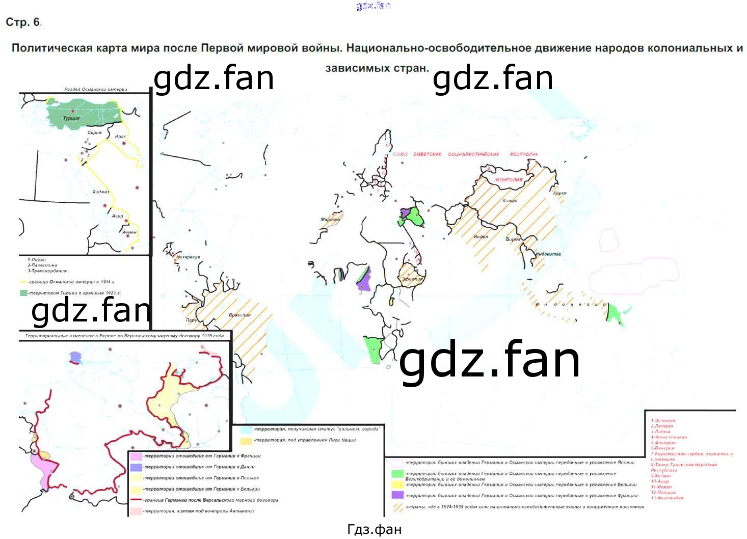 Проверка домашнего задания всегда занимает большое количество времени. На помощь приходит ГДЗ фан по Истории девятого класса. Здесь собраны популярные ответы на 6-7 Политическая карта мира после Первой мировой войны. Национально- освободительное движение народов колониальных и зависимых стран История 9 класс контурные карты Курбский Н.А.