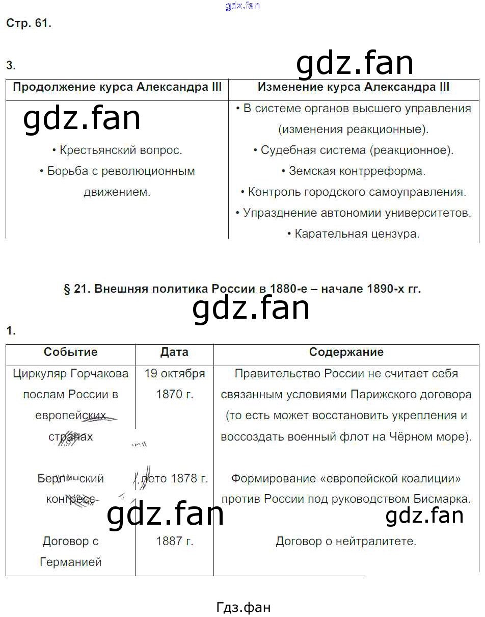 Проверка домашнего задания всегда занимает большое количество времени. На помощь приходит ГДЗ фан по Истории девятого класса. Здесь собраны популярные ответы на 61 (№ 3. §21. Внешняя политика России в 1880 — начале 1890 гг. № 1) История России 9 класс рабочая тетрадь Симонова Е.В.