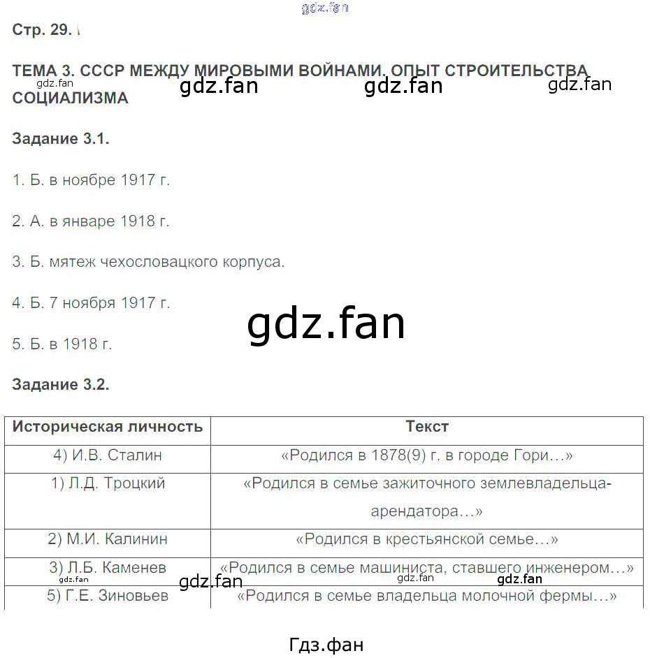 Проверка домашнего задания всегда занимает большое количество времени. На помощь приходит ГДЗ фан по Истории девятого класса. Здесь собраны популярные ответы на 29 (Тема 3. СССР между мировыми войнами. Опыт строительства социализма № 1, 2) История 9 класс рабочая тетрадь История России. XX - начало XXI вв. Симонова Е.В.