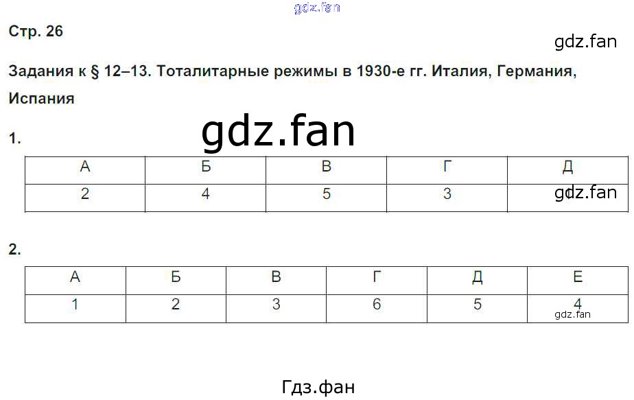 Проверка домашнего задания всегда занимает большое количество времени. На помощь приходит ГДЗ фан по Истории девятого класса. Здесь собраны популярные ответы на 26 (§12-13. Тоталитарные режимы в 1930-е гг. Италия, Германия, Испания № 1, 2) История 9 класс рабочая тетрадь Сороко-Цюпа О.С.