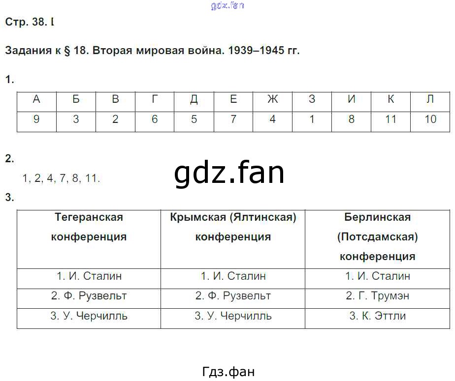 Проверка домашнего задания всегда занимает большое количество времени. На помощь приходит ГДЗ фан по Истории девятого класса. Здесь собраны популярные ответы на 38 (§18. Вторая мировая война. 1939-1945 гг. № 1, 2, 3) История 9 класс рабочая тетрадь Сороко-Цюпа О.С.