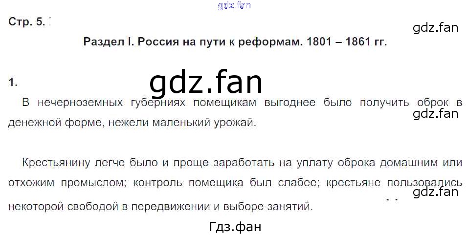 Проверка домашнего задания всегда занимает большое количество времени. На помощь приходит ГДЗ фан по Истории девятого класса. Здесь собраны популярные ответы на 5 (Раздел I. Россия на пути к реформам. 1801 — 1861 гг. № 1) История России 9 класс рабочая тетрадь Стафёрова Е.Л.