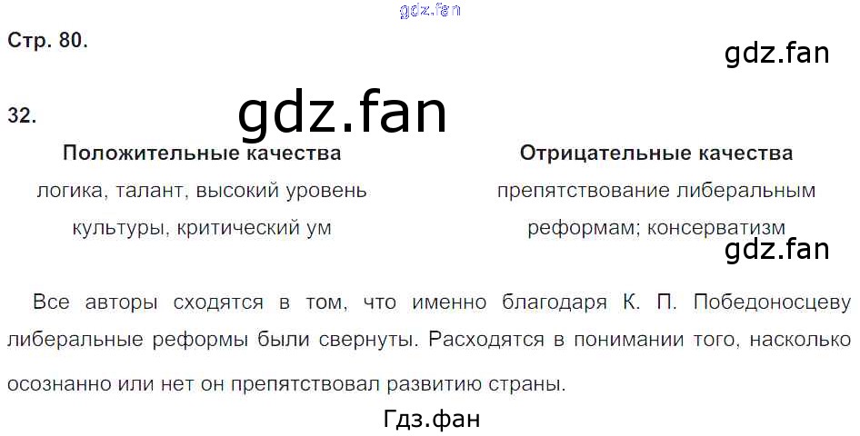 Проверка домашнего задания всегда занимает большое количество времени. На помощь приходит ГДЗ фан по Истории девятого класса. Здесь собраны популярные ответы на 80 (№ 32) История России 9 класс рабочая тетрадь Стафёрова Е.Л.