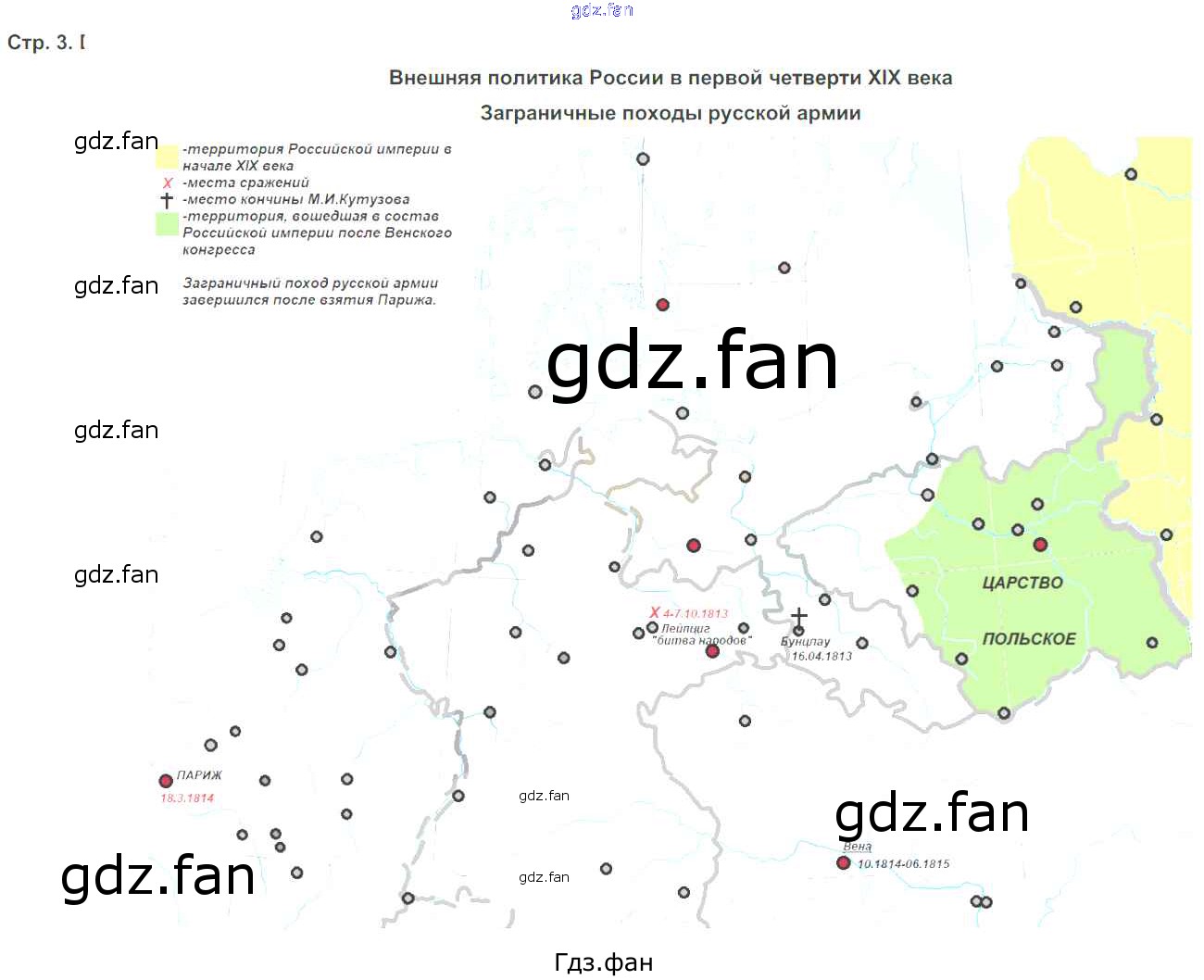 Проверка домашнего задания всегда занимает большое количество времени. На помощь приходит ГДЗ фан по Истории девятого класса. Здесь собраны популярные ответы на 3 (Загарничные походы русской армии) История России 9 класс контурные карты Тороп В.В.