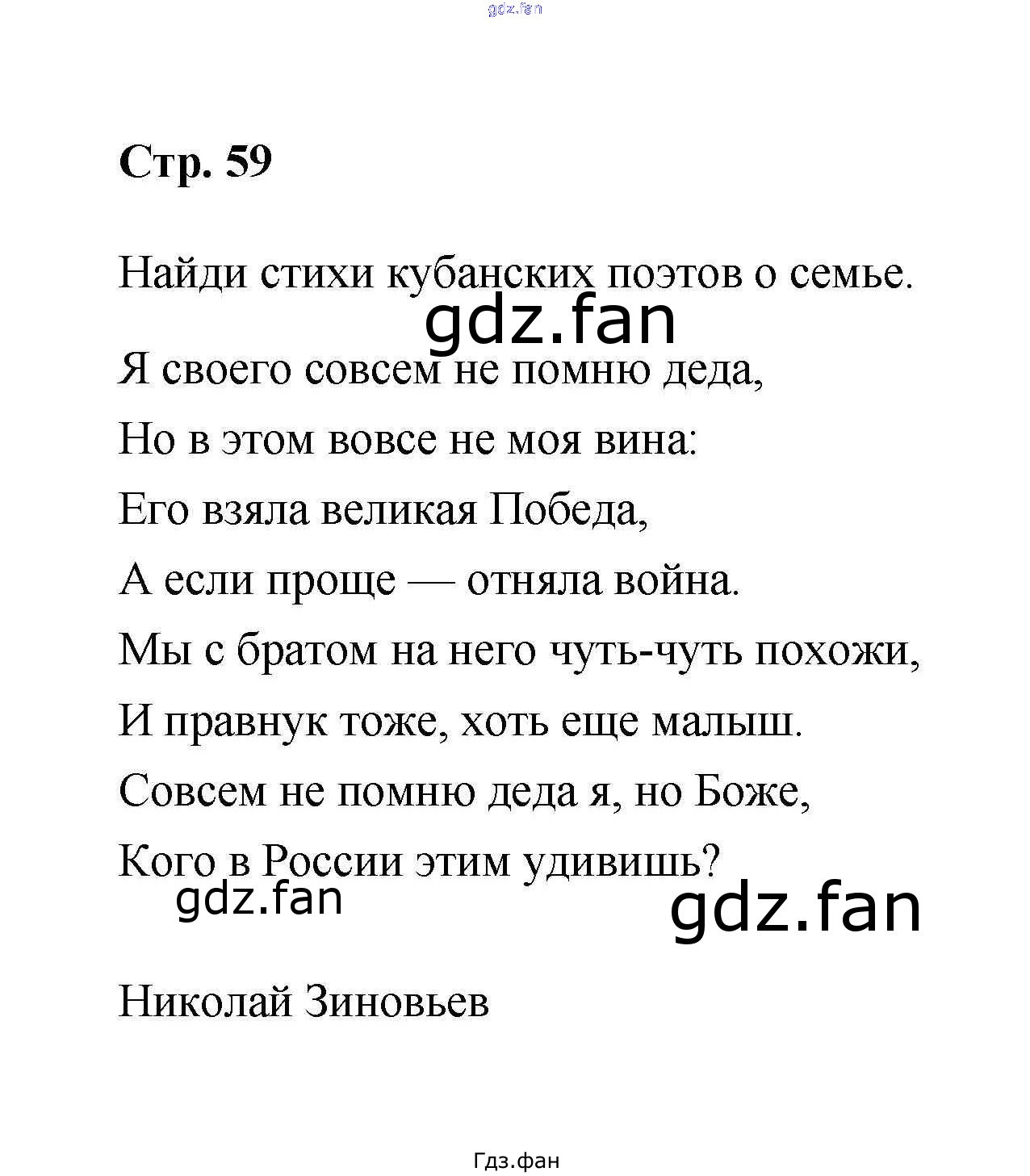 Проверка домашнего задания всегда занимает большое количество времени. На помощь приходит ГДЗ фан по Кубановедению второго класса. Здесь собраны популярные ответы на стр. 59 Кубановедение 2 класс рабочая тетрадь Еременко