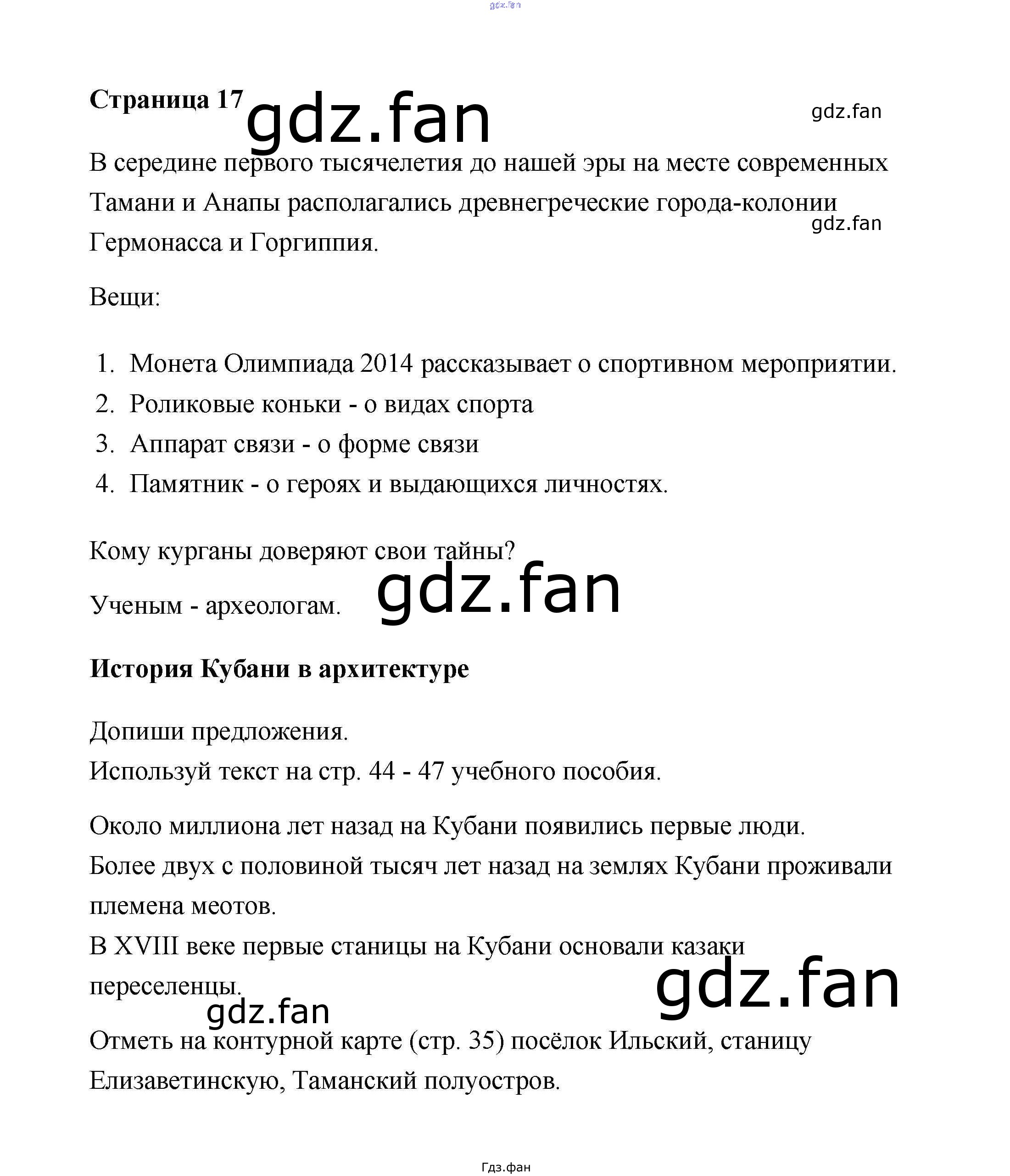 Проверка домашнего задания всегда занимает большое количество времени. На помощь приходит ГДЗ фан по Кубановедению четвертого класса. Здесь собраны популярные ответы на №17 Кубановедение 4 класс рабочая тетрадь Науменко