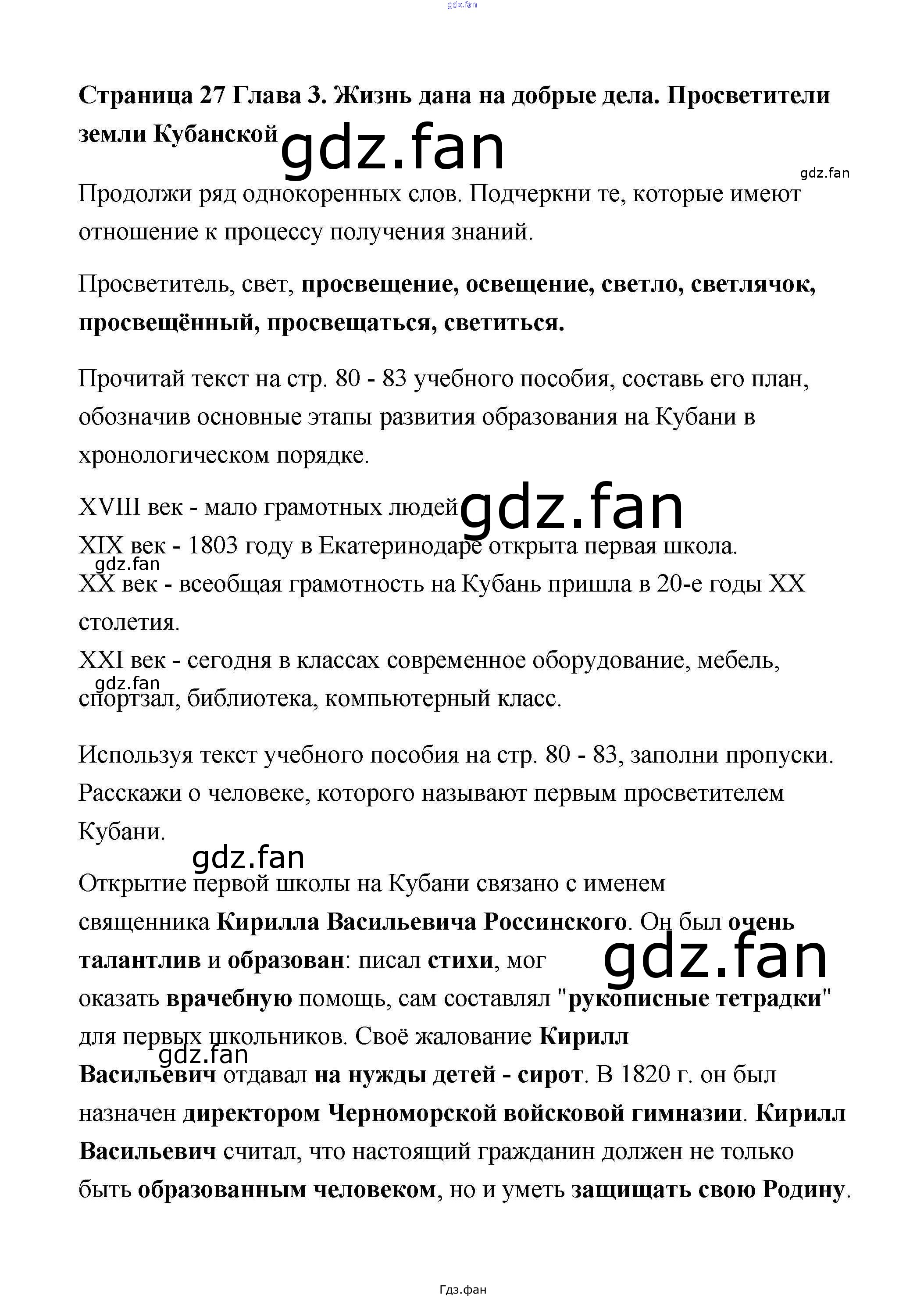 Проверка домашнего задания всегда занимает большое количество времени. На помощь приходит ГДЗ фан по Кубановедению четвертого класса. Здесь собраны популярные ответы на №27 Кубановедение 4 класс рабочая тетрадь Науменко