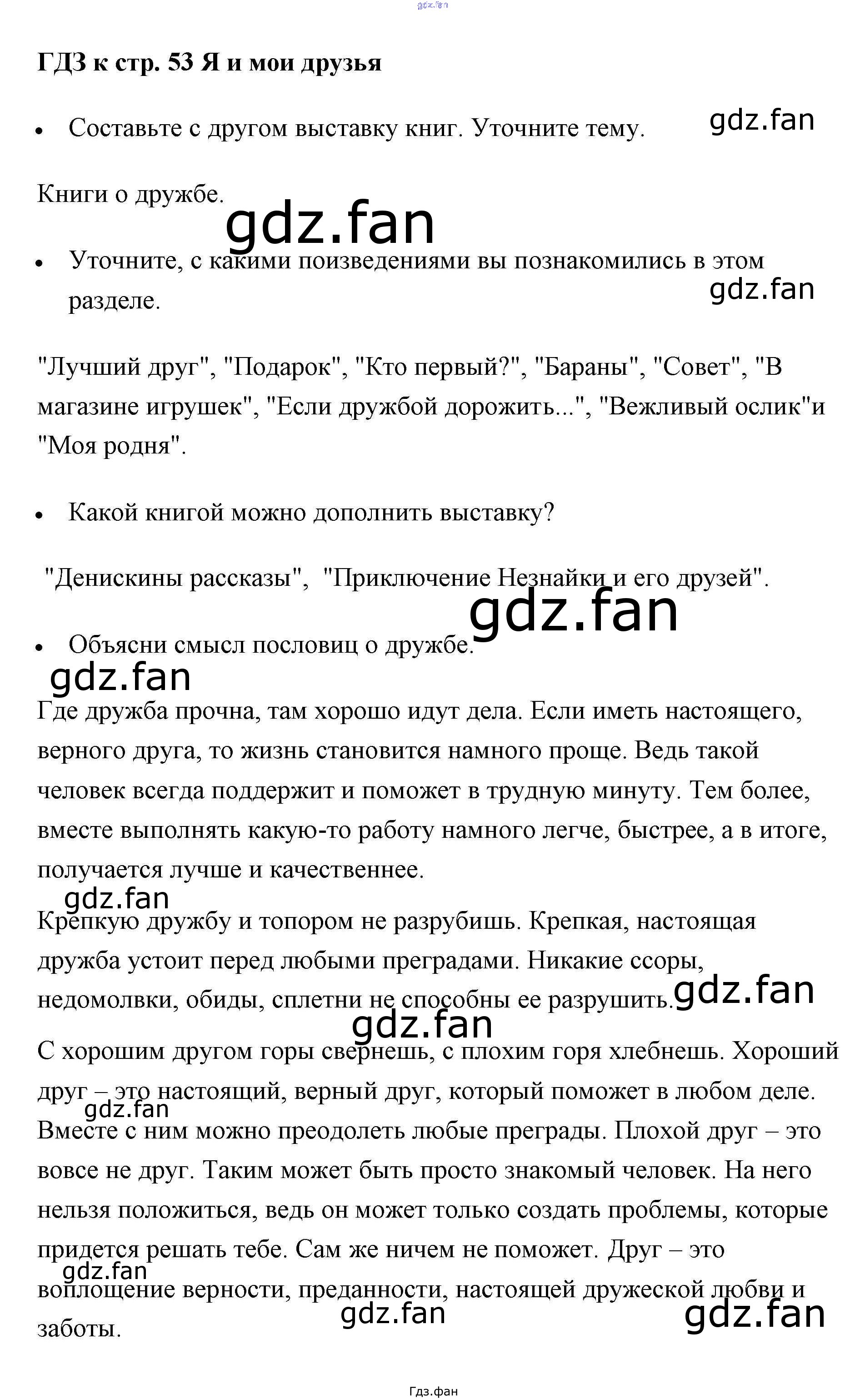 Проверка домашнего задания всегда занимает большое количество времени. На помощь приходит ГДЗ фан по Литературе первого класса. Здесь собраны популярные ответы на 53 (Я и мои друзья) Литературное чтение 1 класс рабочая тетрадь Бойкина
