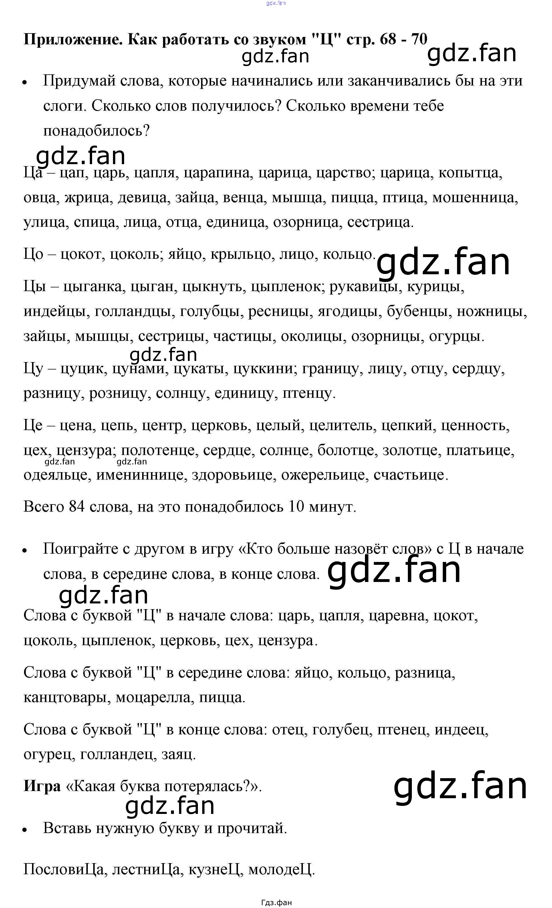 Проверка домашнего задания всегда занимает большое количество времени. На помощь приходит ГДЗ фан по Литературе первого класса. Здесь собраны популярные ответы на 68-70 (Как работать со звуком "Ц") Литературное чтение 1 класс рабочая тетрадь Бойкина