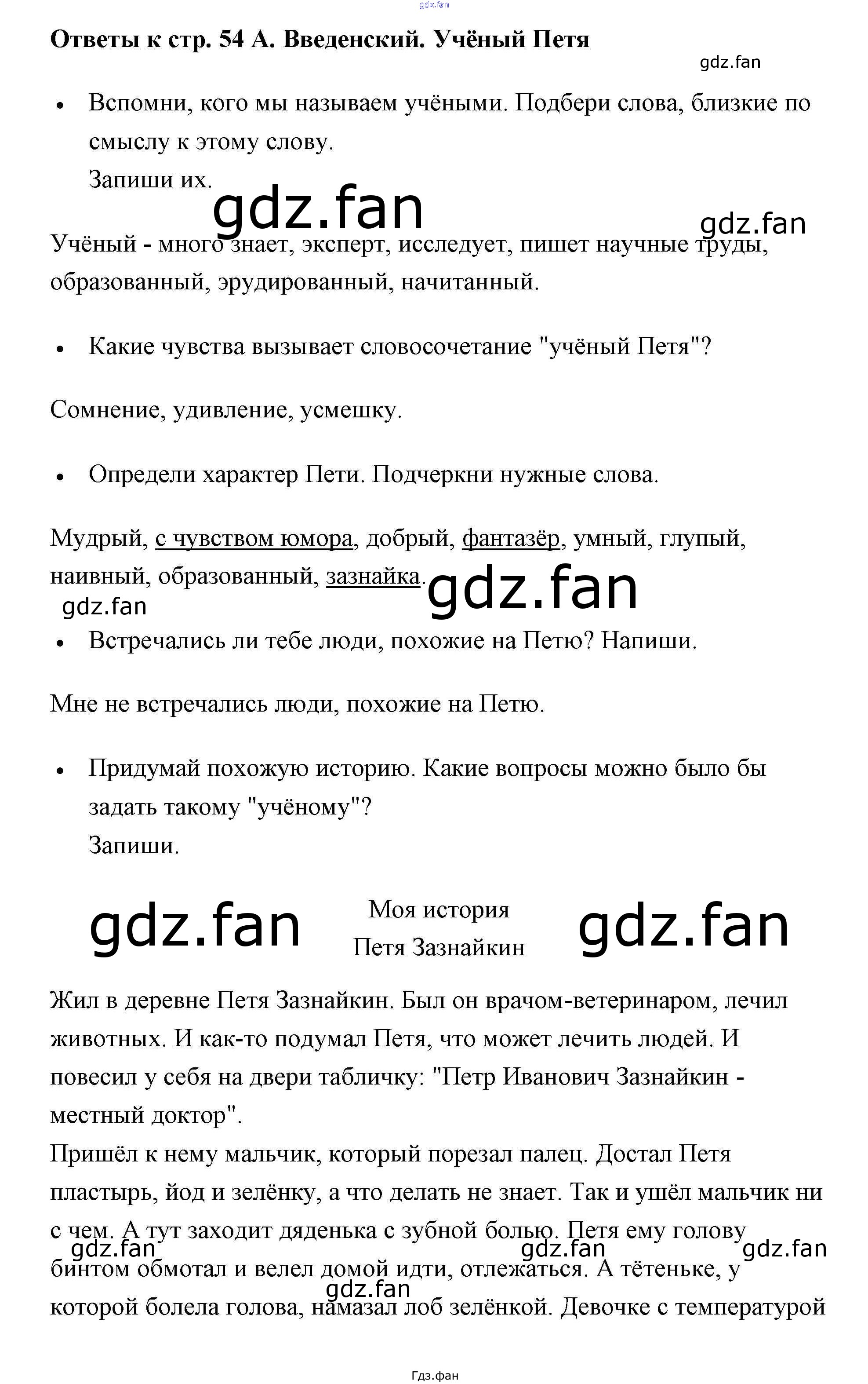 Проверка домашнего задания всегда занимает большое количество времени. На помощь приходит ГДЗ фан по Литературе второго класса. Здесь собраны популярные ответы на А. Введенский. Учёный Петя - 54 Литературное чтение 2 класс рабочая тетрадь Бойкина