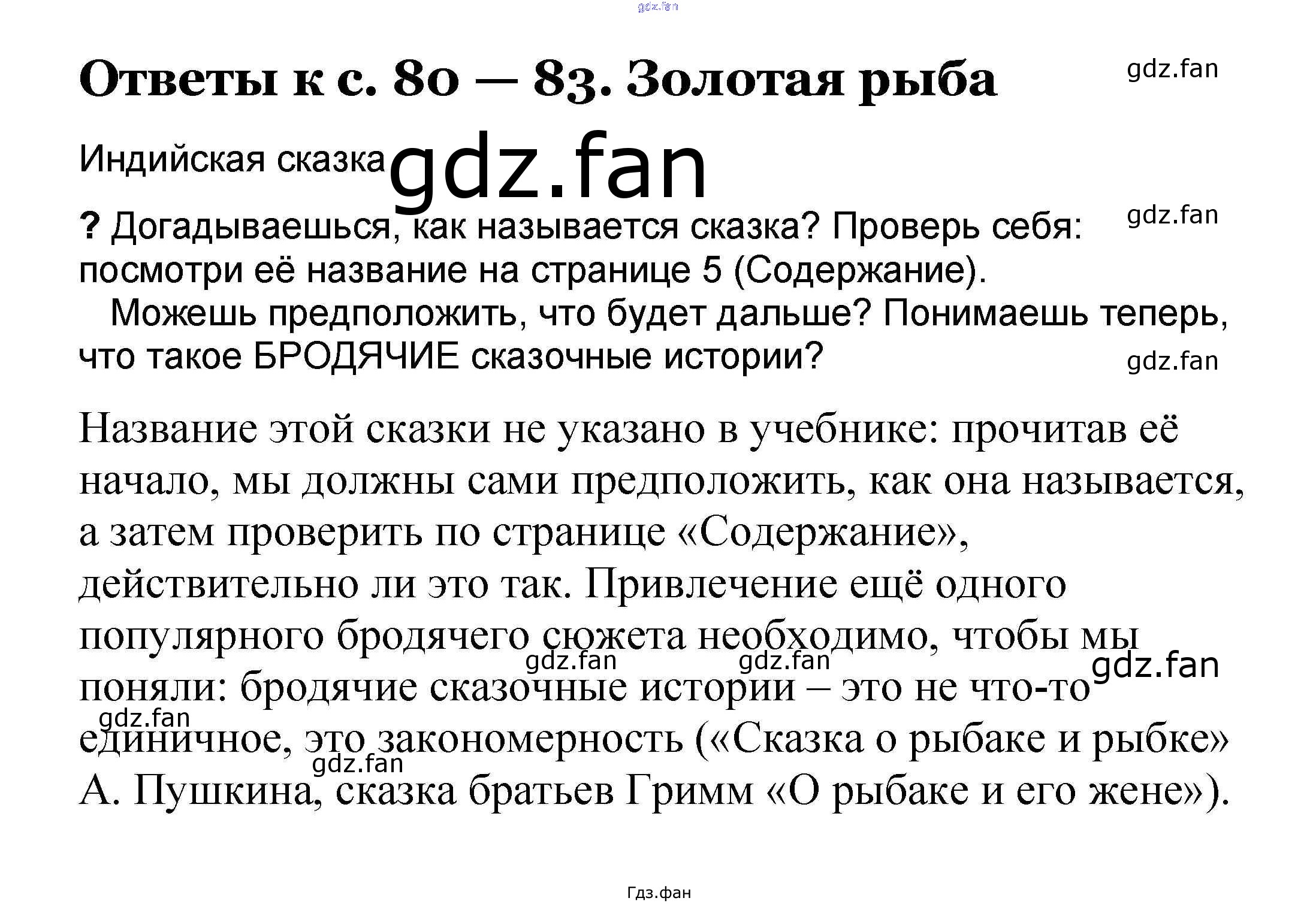 Проверка домашнего задания всегда занимает большое количество времени. На помощь приходит ГДЗ фан по Литературе третьего класса. Здесь собраны популярные ответы на 80-83 (Золотая рыба) Литературное чтение 3 класс Чуракова Н.А.