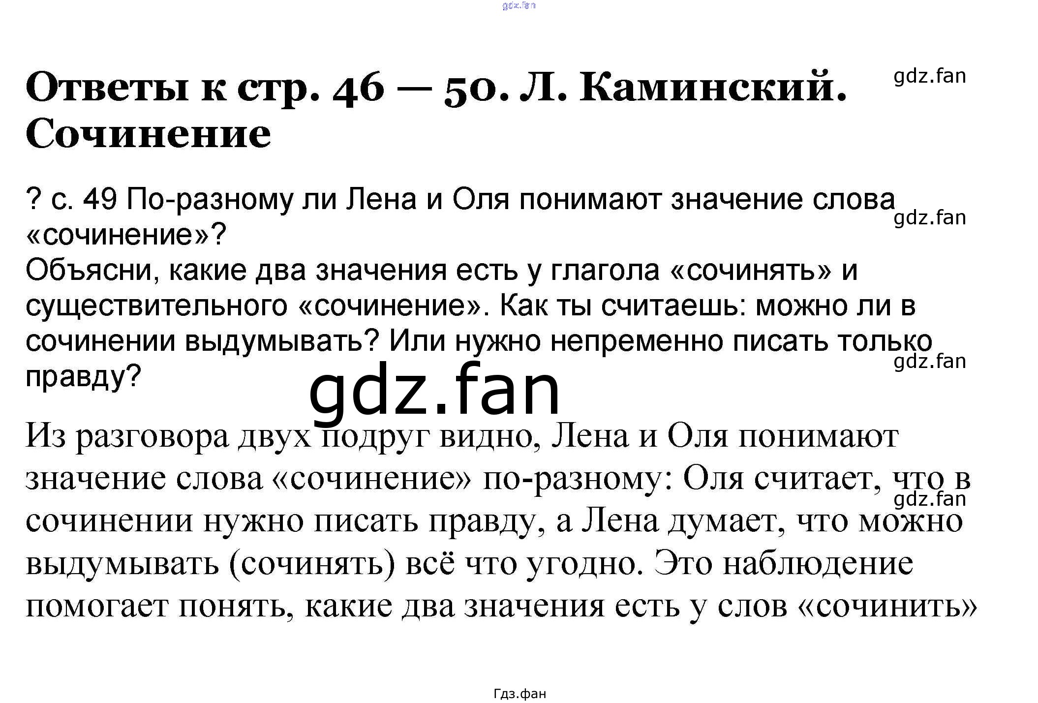 Проверка домашнего задания всегда занимает большое количество времени. На помощь приходит ГДЗ фан по Литературе третьего класса. Здесь собраны популярные ответы на 46-50 (Л. Каминский. Сочинение) Литературное чтение 3 класс Чуракова Н.А.