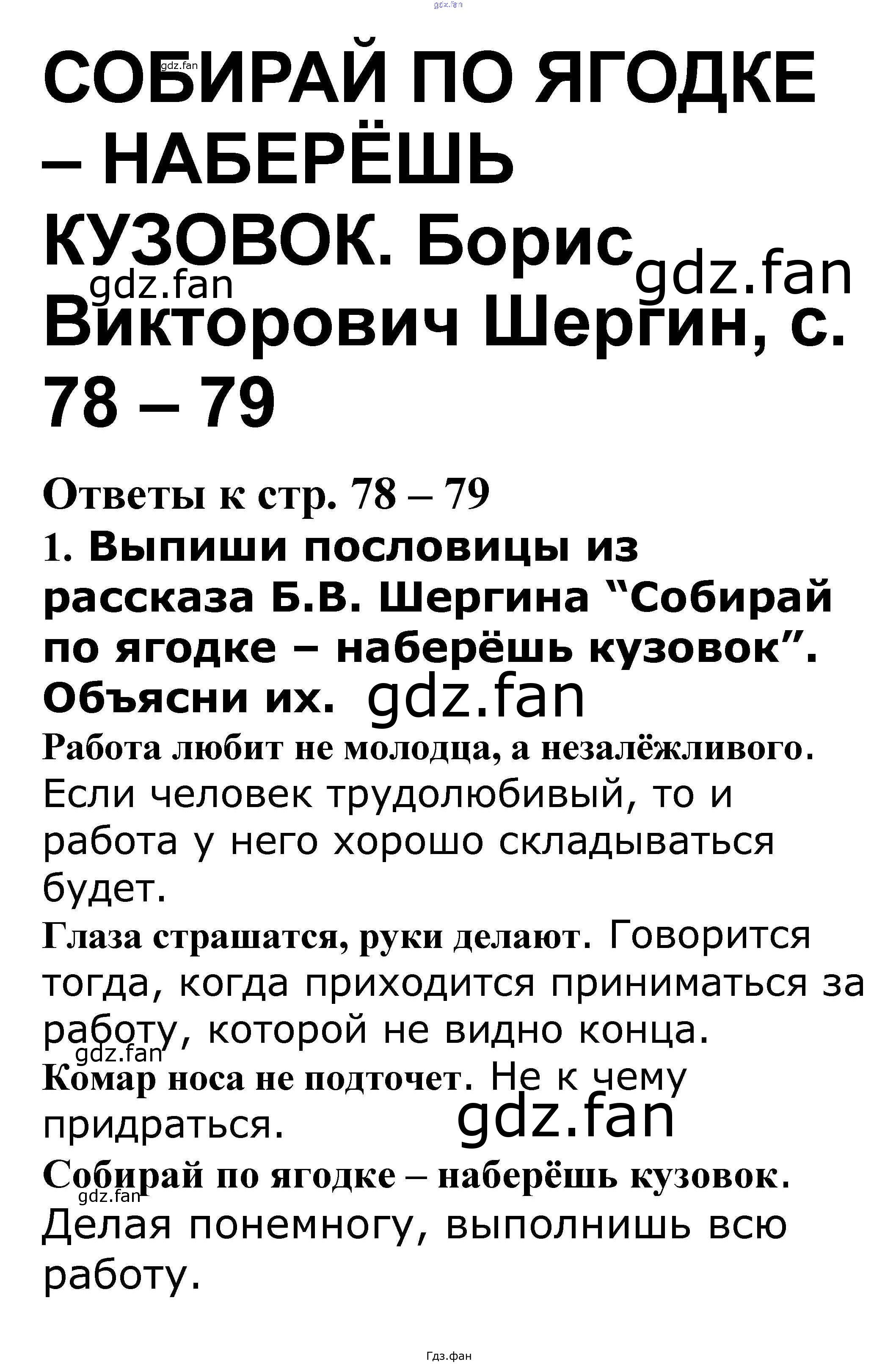 Проверка домашнего задания всегда занимает большое количество времени. На помощь приходит ГДЗ фан по Литературе третьего класса. Здесь собраны популярные ответы на 78-79 (Б.В. Шергин) Литературное чтение 3 класс рабочая тетрадь Кутявина С.В.