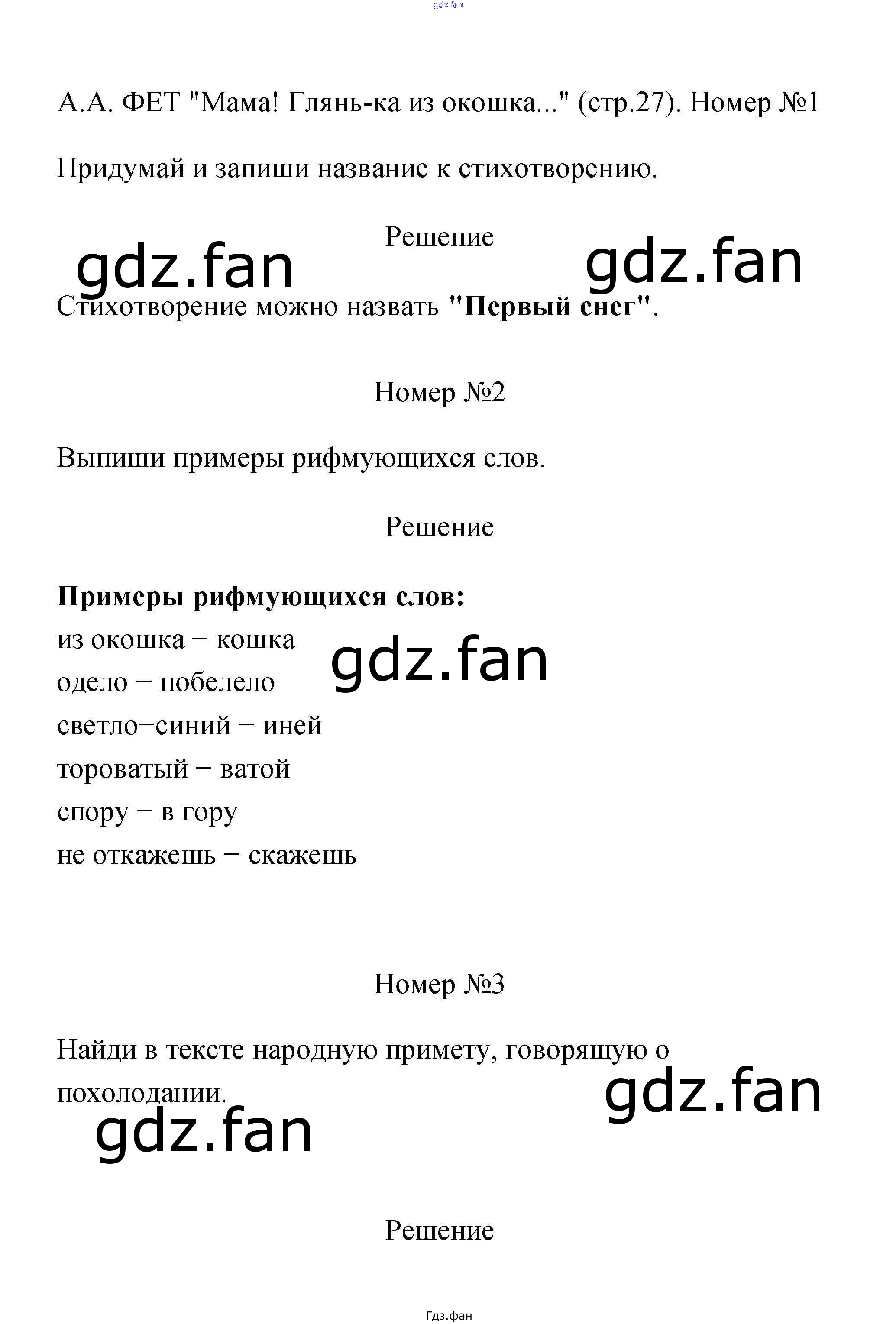 Проверка домашнего задания всегда занимает большое количество времени. На помощь приходит ГДЗ фан по Литературе третьего класса. Здесь собраны популярные ответы на 27 (А.А. Фет "Мама! Глянь-ка из окошка" № 1, 2, 3, 4. И.С. Никитин "Встреча зимы" № 1) Литературное чтение 3 класс рабочая тетрадь Тихомирова