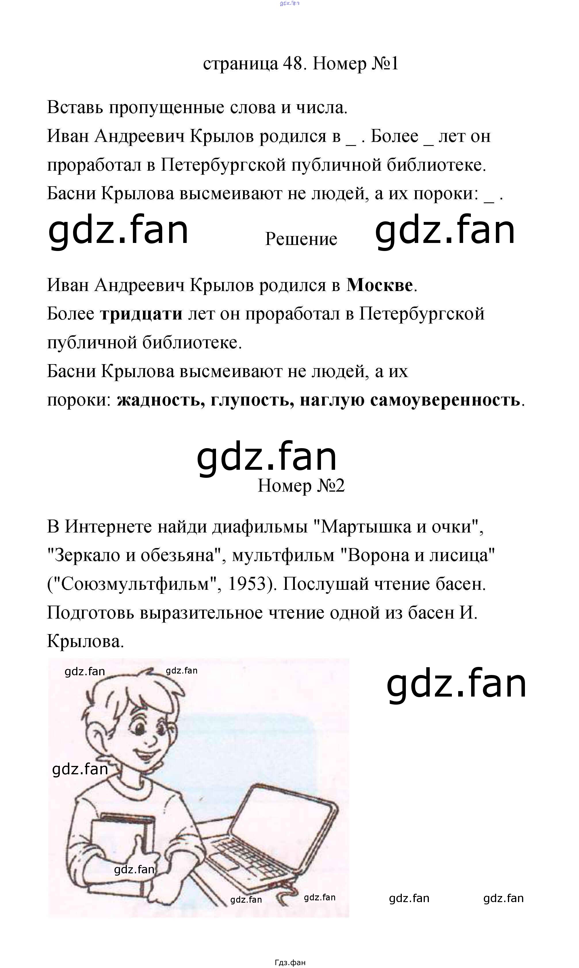 Проверка домашнего задания всегда занимает большое количество времени. На помощь приходит ГДЗ фан по Литературе третьего класса. Здесь собраны популярные ответы на 48 (И.А. Крылов № 1, 2, 3, 4) Литературное чтение 3 класс рабочая тетрадь Тихомирова