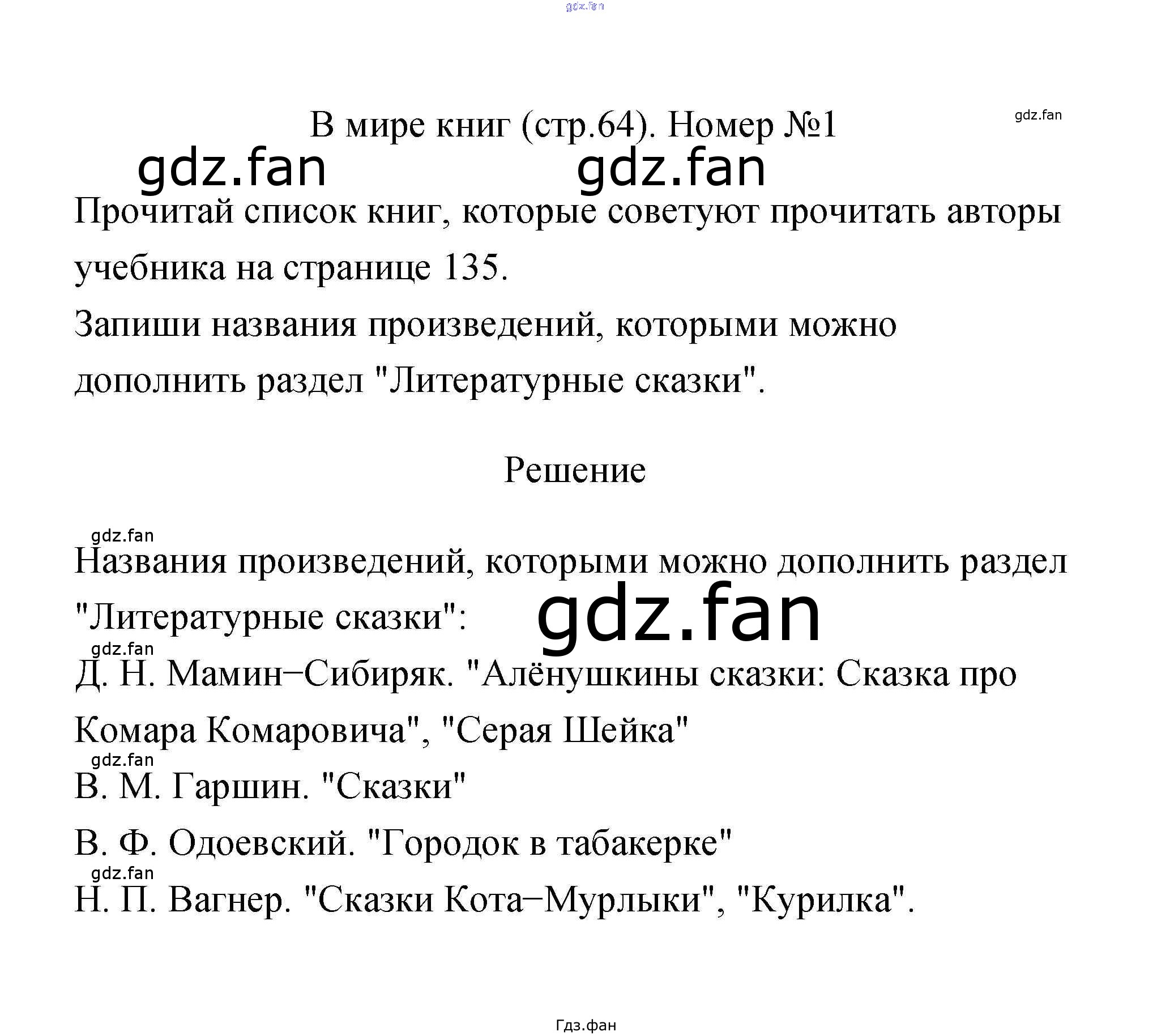 Проверка домашнего задания всегда занимает большое количество времени. На помощь приходит ГДЗ фан по Литературе третьего класса. Здесь собраны популярные ответы на 64 (Литературные сказки № 1, 2. Д.Н. Мамин-Сибиряк № 1) Литературное чтение 3 класс рабочая тетрадь Тихомирова