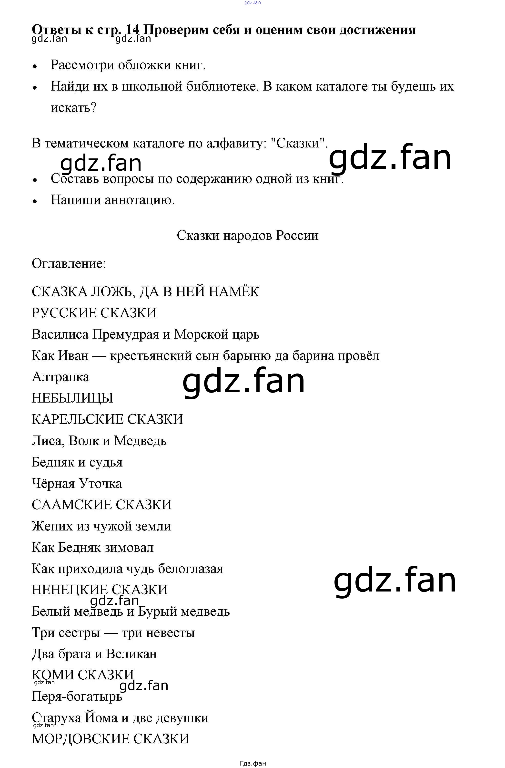 Проверка домашнего задания всегда занимает большое количество времени. На помощь приходит ГДЗ фан по Литературе третьего класса. Здесь собраны популярные ответы на 14 (Проверим себя и оценим свои достижения)) Литературное чтение 3 класс рабочая тетрадь Виноградская