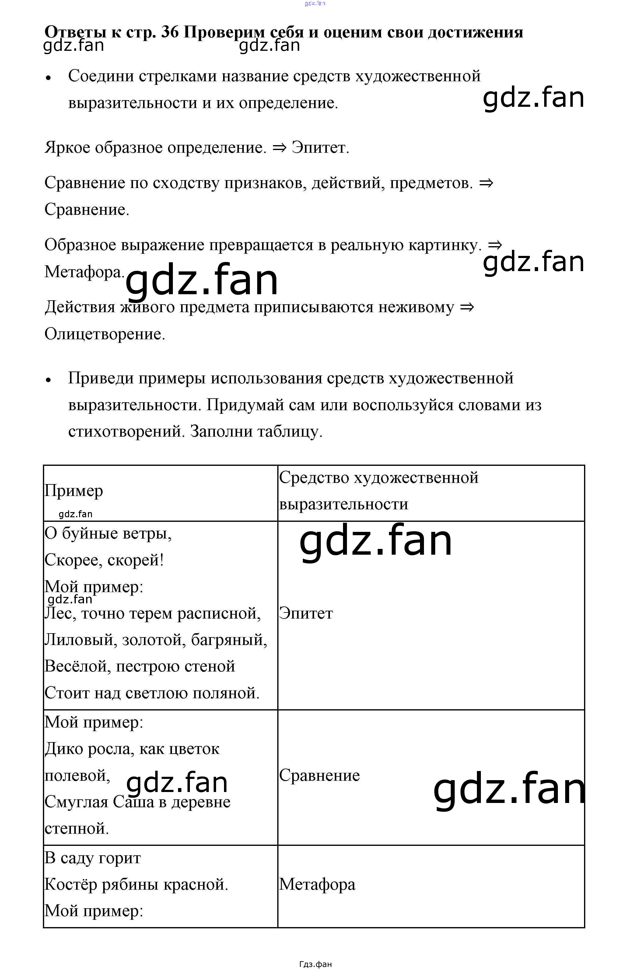 Проверка домашнего задания всегда занимает большое количество времени. На помощь приходит ГДЗ фан по Литературе третьего класса. Здесь собраны популярные ответы на 36 (Проверим себя и оценим свои достижения) Литературное чтение 3 класс рабочая тетрадь Виноградская