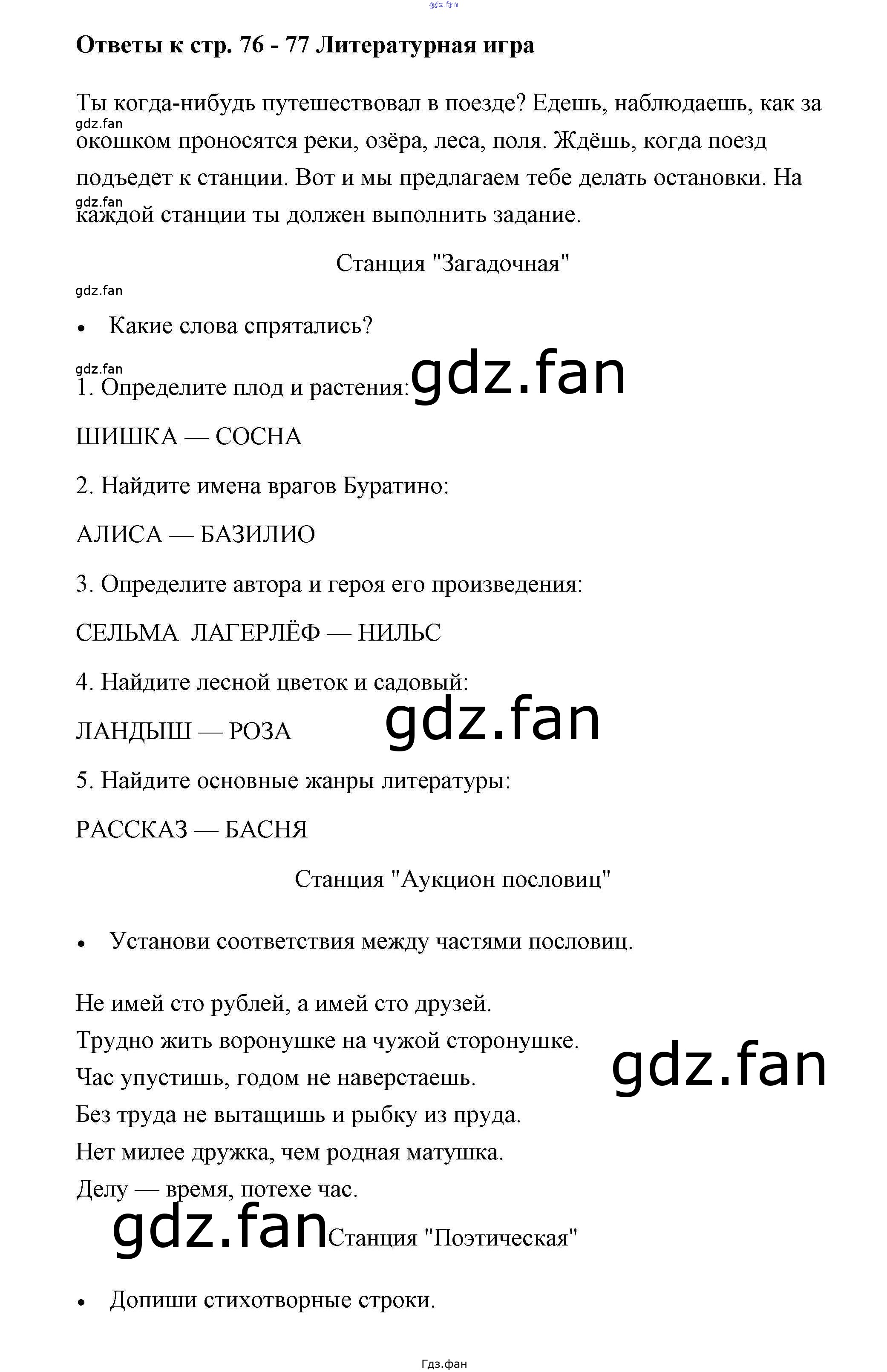 Проверка домашнего задания всегда занимает большое количество времени. На помощь приходит ГДЗ фан по Литературе третьего класса. Здесь собраны популярные ответы на 76-77 (Литературная игра) Литературное чтение 3 класс рабочая тетрадь Виноградская