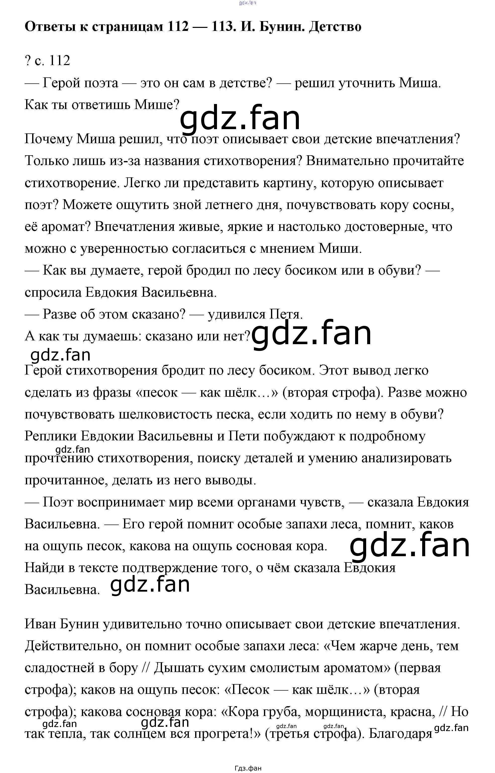 Проверка домашнего задания всегда занимает большое количество времени. На помощь приходит ГДЗ фан по Литературе четвертого класса. Здесь собраны популярные ответы на И. Бунин. Детство - 112 Литературное чтение 4 класс Чуракова