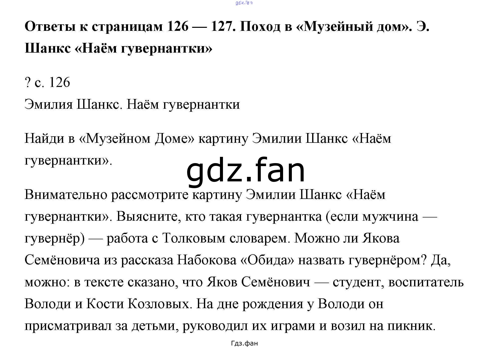 Проверка домашнего задания всегда занимает большое количество времени. На помощь приходит ГДЗ фан по Литературе четвертого класса. Здесь собраны популярные ответы на Поход в «Музейный дом». Э. Шанкс «Наём гувернантки» - 126 Литературное чтение 4 класс Чуракова