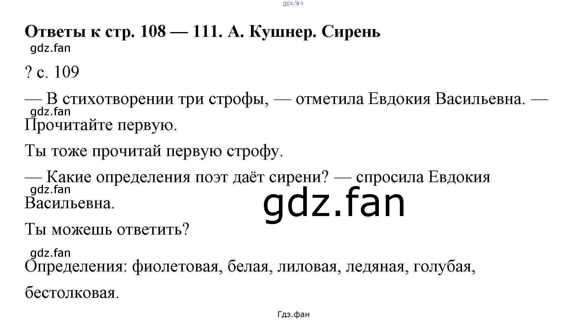 Проверка домашнего задания всегда занимает большое количество времени. На помощь приходит ГДЗ фан по Литературе четвертого класса. Здесь собраны популярные ответы на А. Кушнер. Сирень - 108-111 Литературное чтение 4 класс Чуракова