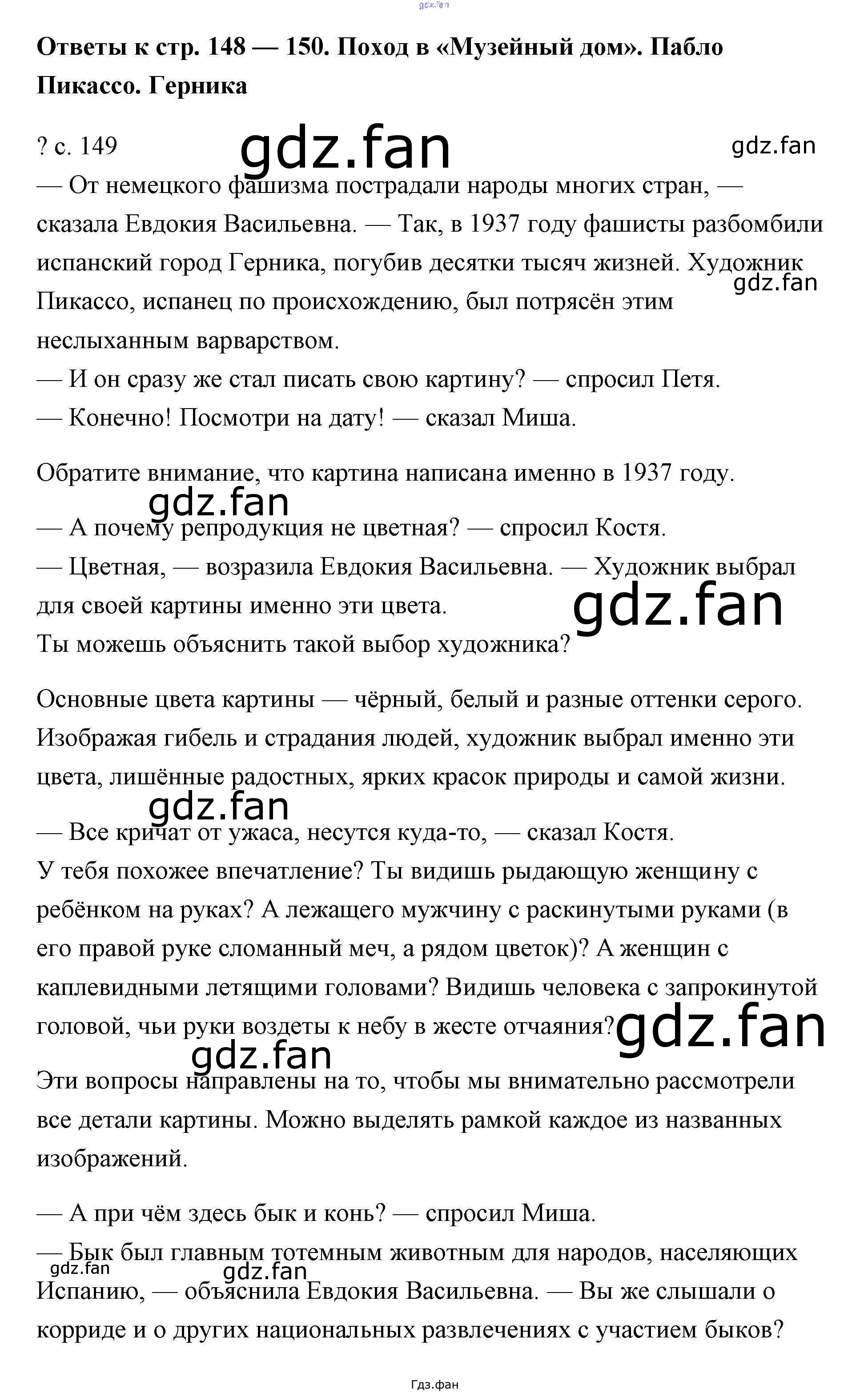 Проверка домашнего задания всегда занимает большое количество времени. На помощь приходит ГДЗ фан по Литературе четвертого класса. Здесь собраны популярные ответы на Поход в «Музейный дом». Пабло Пикассо. Герника - 149 Литературное чтение 4 класс Чуракова