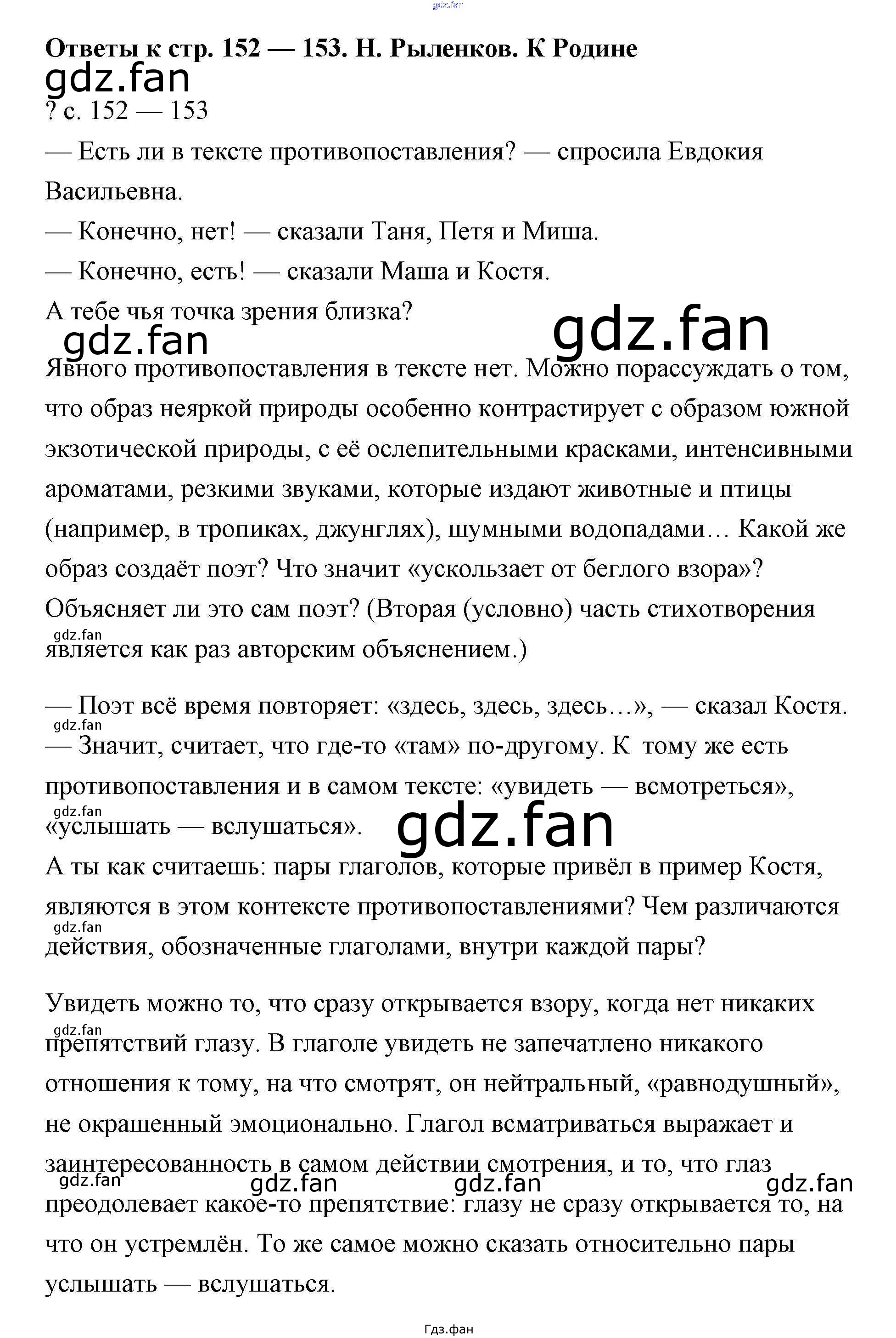 Проверка домашнего задания всегда занимает большое количество времени. На помощь приходит ГДЗ фан по Литературе четвертого класса. Здесь собраны популярные ответы на Н. Рыленков. К Родине - 152-153 Литературное чтение 4 класс Чуракова