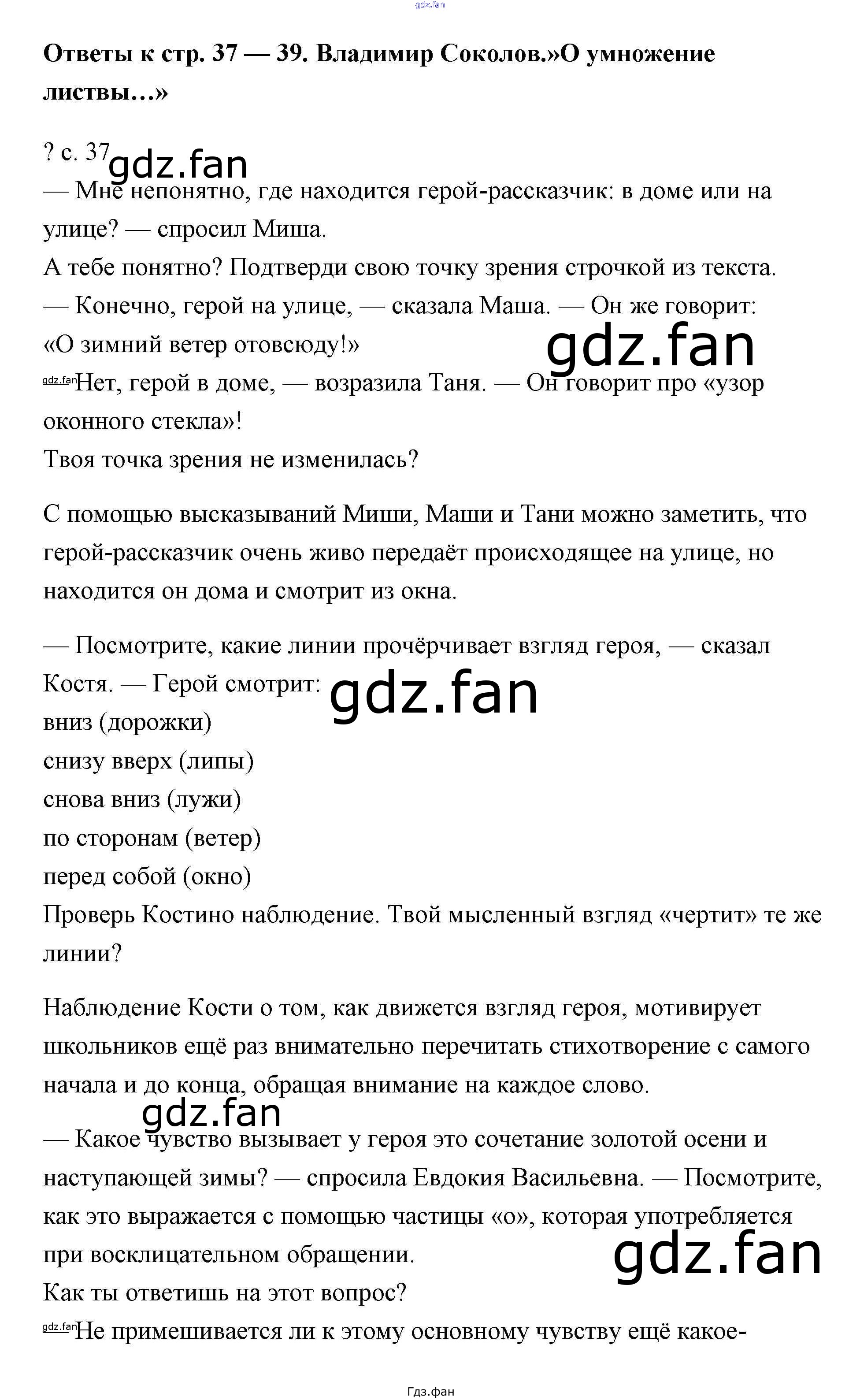 Проверка домашнего задания всегда занимает большое количество времени. На помощь приходит ГДЗ фан по Литературе четвертого класса. Здесь собраны популярные ответы на В.А. Соколов «О умножении листвы» - 37 Литературное чтение 4 класс Чуракова
