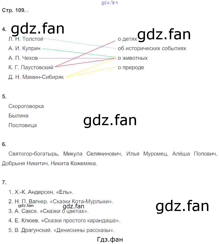 Проверка домашнего задания всегда занимает большое количество времени. На помощь приходит ГДЗ фан по Литературе четвертого класса. Здесь собраны популярные ответы на 109 (№ 4, 5, 6, 7) Литературное чтение 4 класс рабочая тетрадь Ефросинина Л.А.