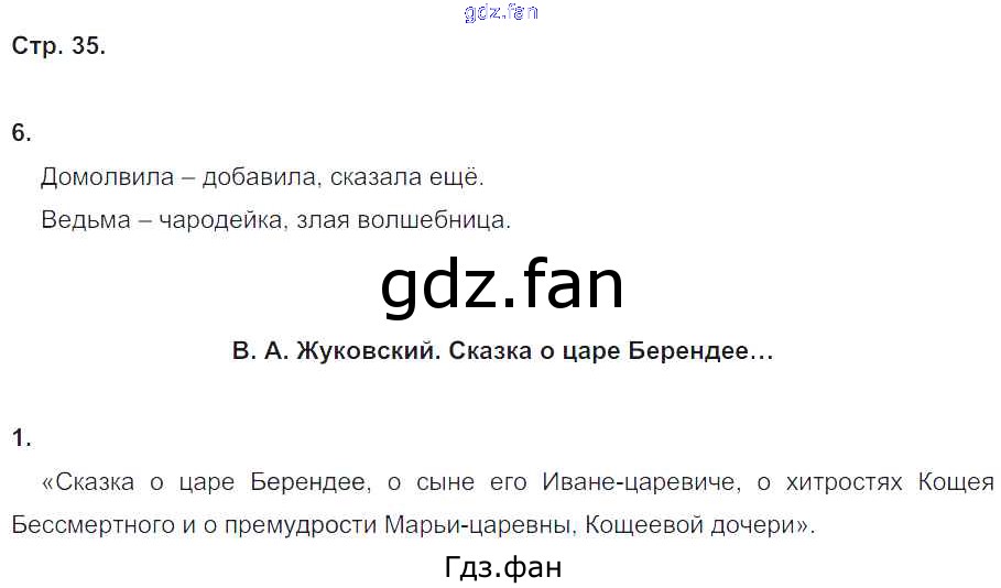 Проверка домашнего задания всегда занимает большое количество времени. На помощь приходит ГДЗ фан по Литературе четвертого класса. Здесь собраны популярные ответы на 35 (№ 6. Сказка о царе Берендее № 1) Литературное чтение 4 класс рабочая тетрадь Ефросинина Л.А.