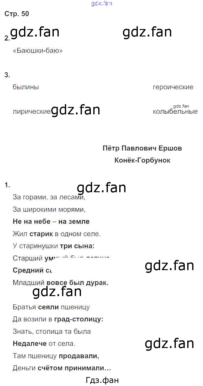 Проверка домашнего задания всегда занимает большое количество времени. На помощь приходит ГДЗ фан по Литературе четвертого класса. Здесь собраны популярные ответы на 50 (№ 2, 3. П.П. Ершов. Конёк-Горбунок № 1) Литературное чтение 4 класс рабочая тетрадь Ефросинина Л.А.