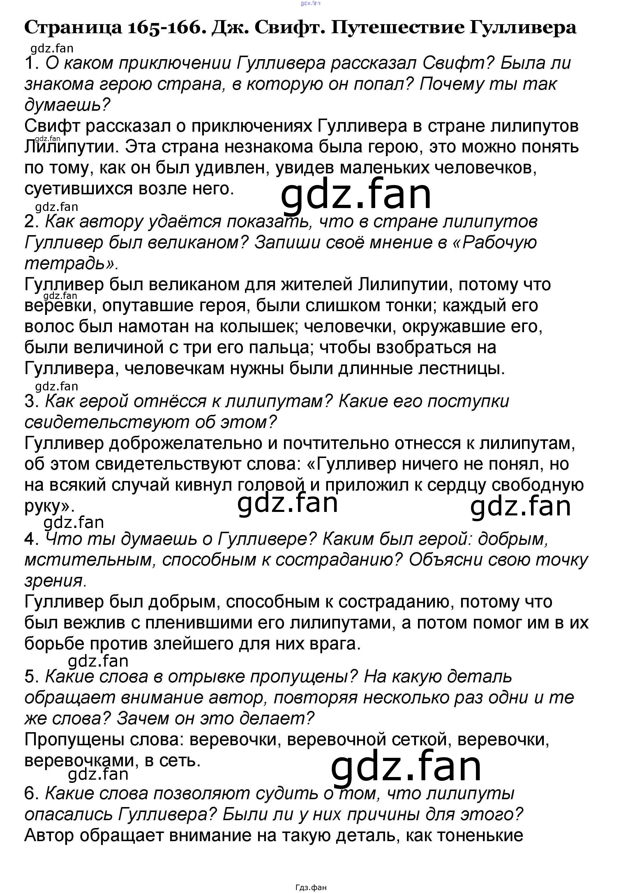 Проверка домашнего задания всегда занимает большое количество времени. На помощь приходит ГДЗ фан по Литературе четвертого класса. Здесь собраны популярные ответы на Зарубежная литература - 165-166 Литературное чтение 4 класс Климанова Л.Ф.