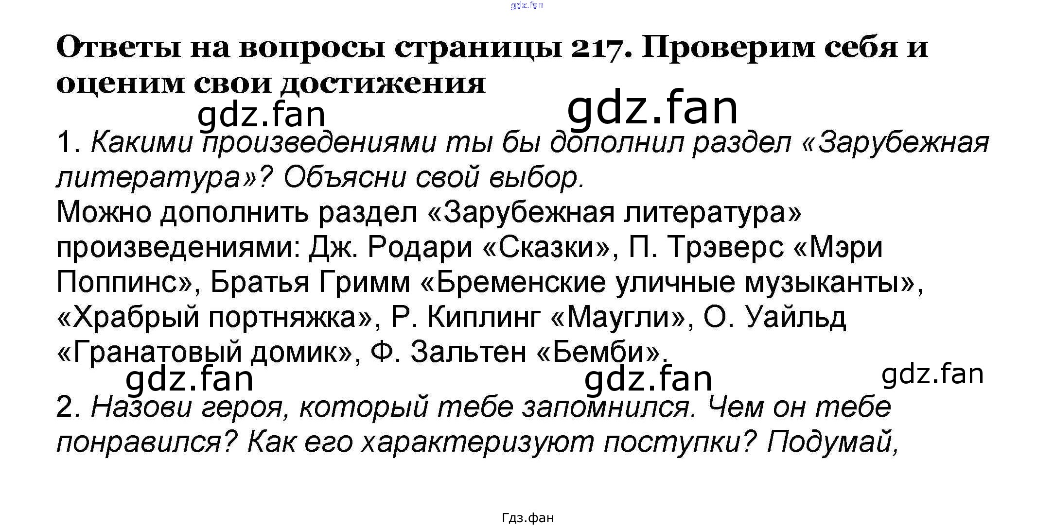 Проверка домашнего задания всегда занимает большое количество времени. На помощь приходит ГДЗ фан по Литературе четвертого класса. Здесь собраны популярные ответы на Проверим себя и оценим свои достижения - 217 Литературное чтение 4 класс Климанова Л.Ф.