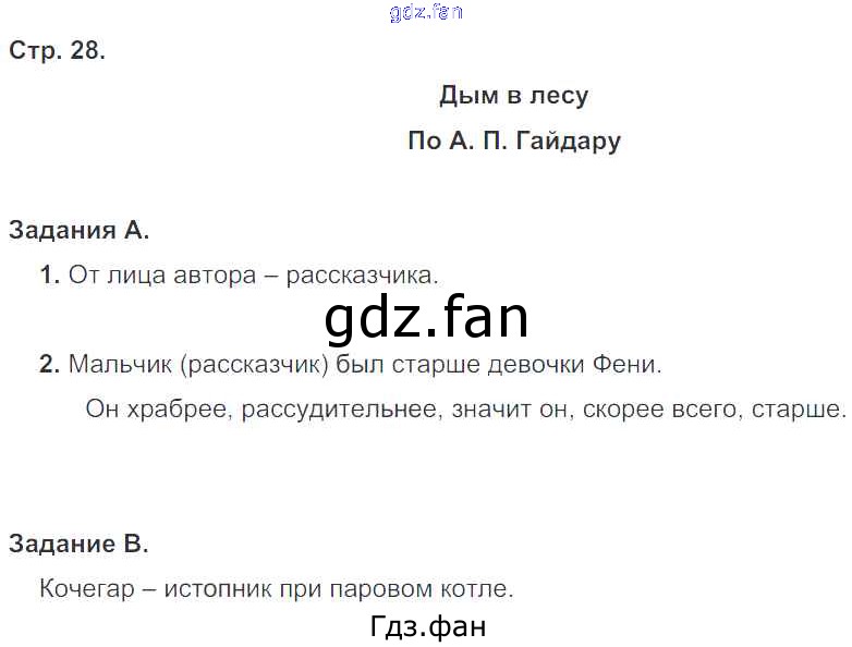 Проверка домашнего задания всегда занимает большое количество времени. На помощь приходит ГДЗ фан по Литературе четвертого класса. Здесь собраны популярные ответы на 28 (Дым в лесу. по А.П. Гайдару. А, В) Литературное чтение 4 класс комплексный тренажер Мишакина Т.Л.