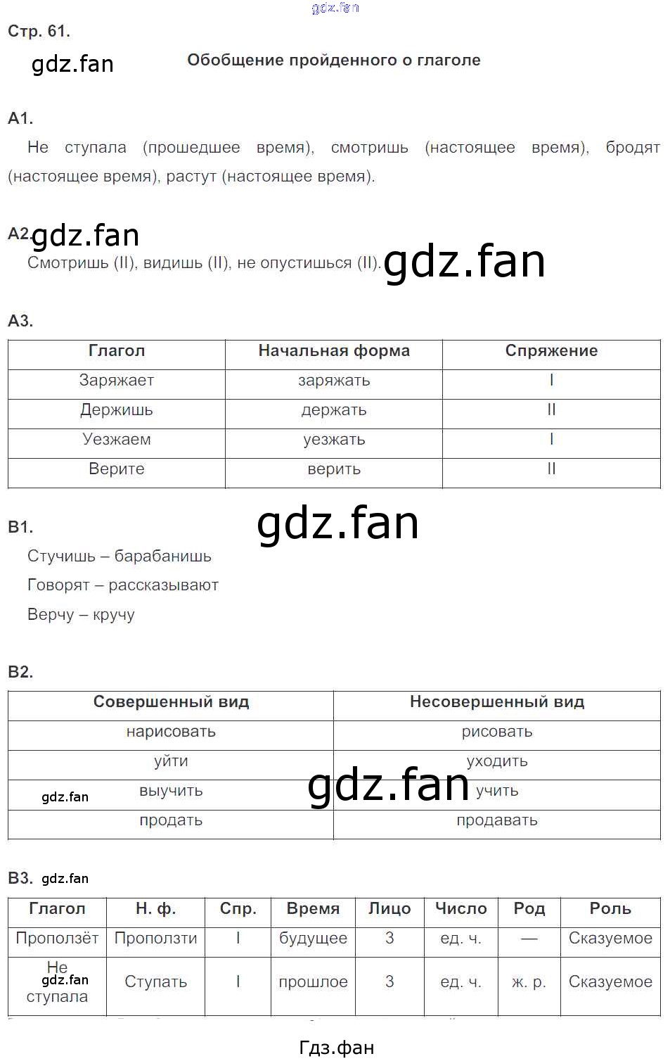 Проверка домашнего задания всегда занимает большое количество времени. На помощь приходит ГДЗ фан по Литературе четвертого класса. Здесь собраны популярные ответы на 61 (Обобщение пройденного о глаголе А1, А2, А3, В1, В2, В3) Литературное чтение 4 класс комплексный тренажер Мишакина Т.Л.