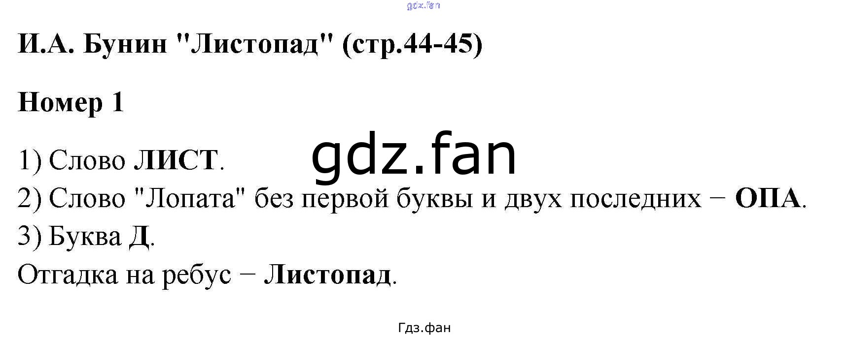 ГДЗ - онлайн ответы на 1 (стр. 44) Литература для 4 класса к Рабочей тетради УМК Тихомирова 2020