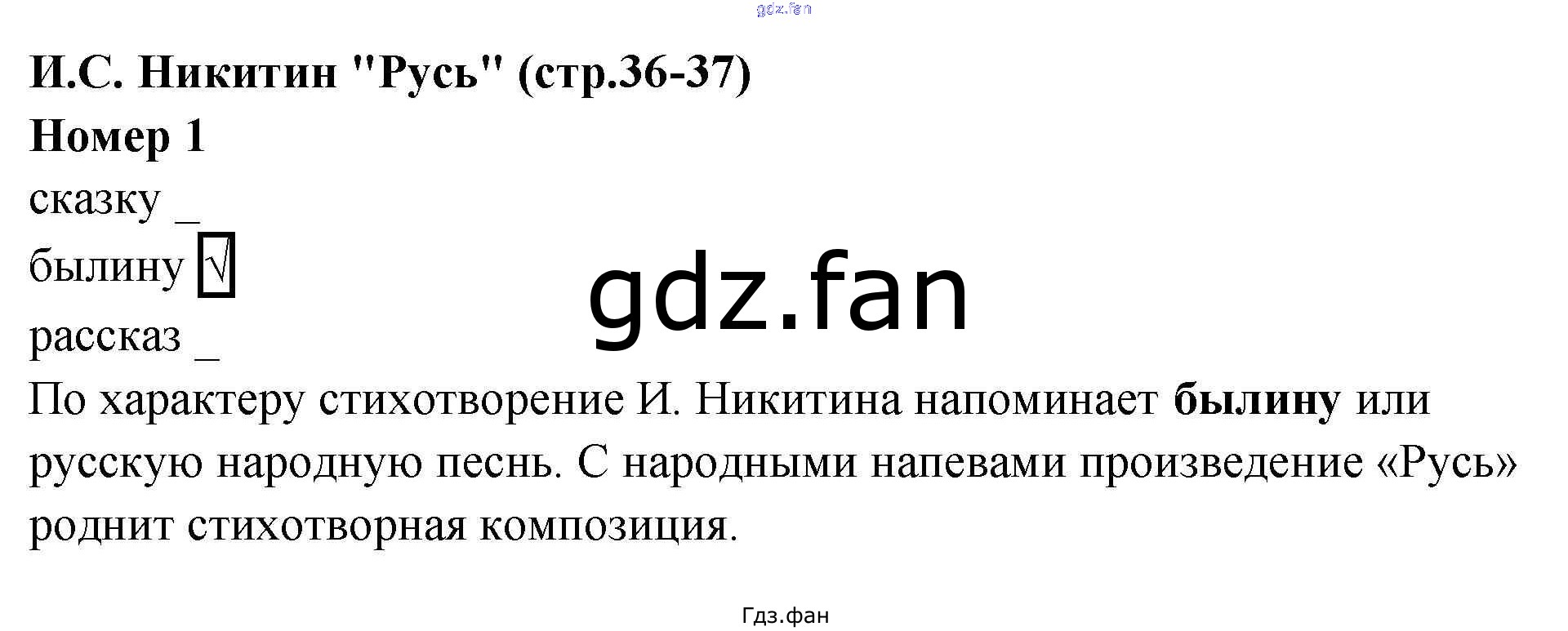 ГДЗ - онлайн ответы на 1 (стр. 36) Литература для 4 класса к Рабочей тетради УМК Тихомирова 2020
