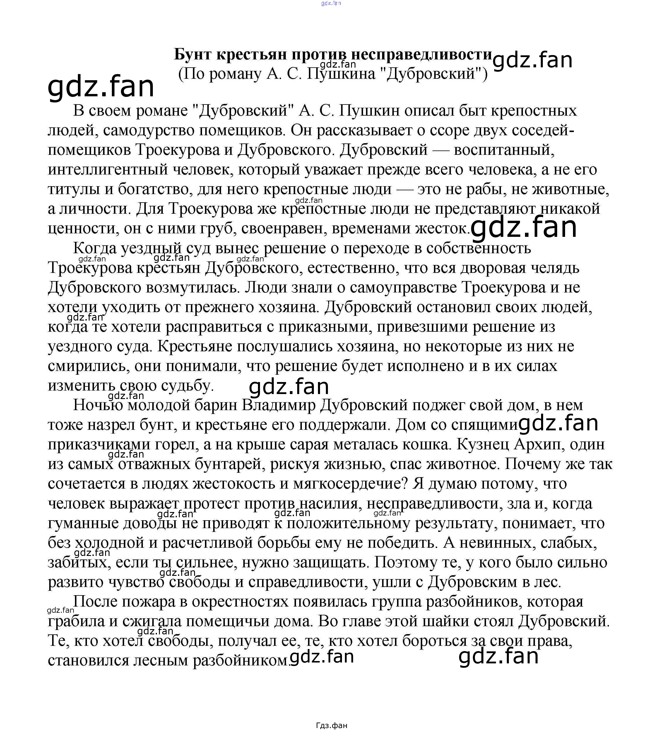 Проверка домашнего задания всегда занимает большое количество времени. На помощь приходит ГДЗ фан по Литературе пятого класса. Здесь собраны популярные ответы на Бунт крестьян против несправедливости (По роману А. С. Пушкина "Дубровский") Сочинения по русской литературе, зарубежной литературе 5-10 классы Белик Э. В.