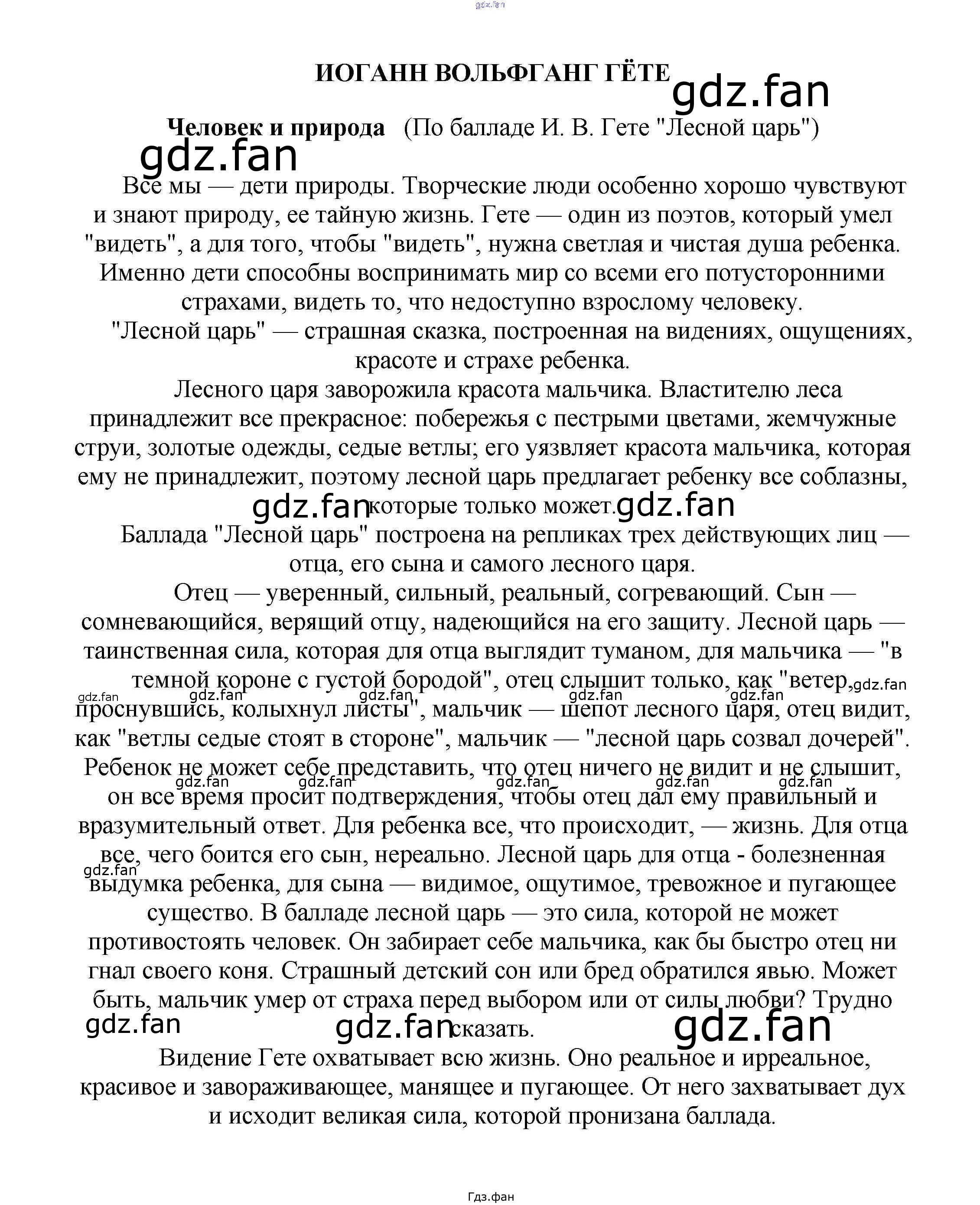 Проверка домашнего задания всегда занимает большое количество времени. На помощь приходит ГДЗ фан по Литературе пятого класса. Здесь собраны популярные ответы на Человек и природа (По балладе И. В. Гете "Лесной царь") Сочинения по русской литературе, зарубежной литературе 5-10 классы Белик Э. В.